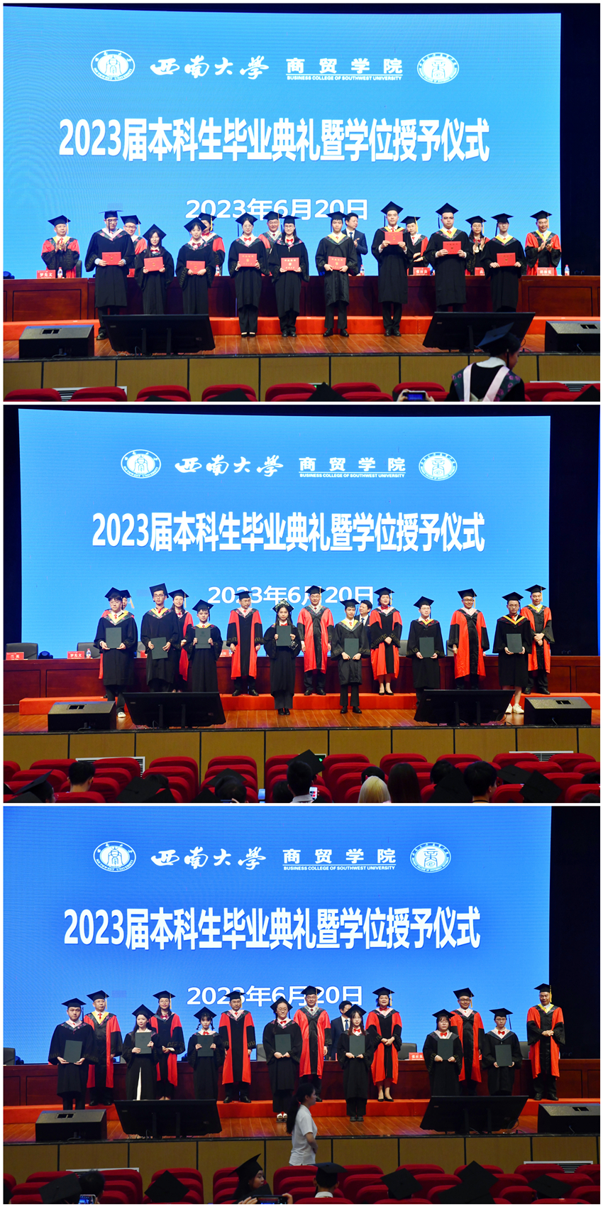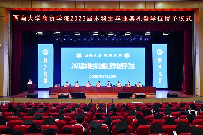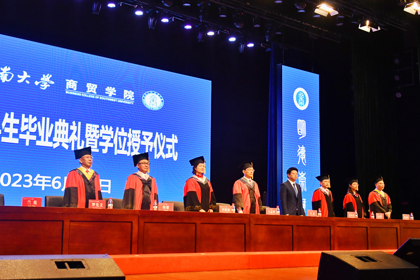 青春炙热,蝉鸣不止;山河万里,再次启航。6月20日上午,澳门pg官方电子平台在荣昌校区新学生活动中心隆重举行2023届本科生毕业典礼暨学位授予仪式。学校党委常委、副校长王志坚,学院全体党政领导,学术委员会委员出席。学院全体教职工、2023届本科毕业生及班主任参加。学院党委副书记、纪委书记兰英主持典礼。