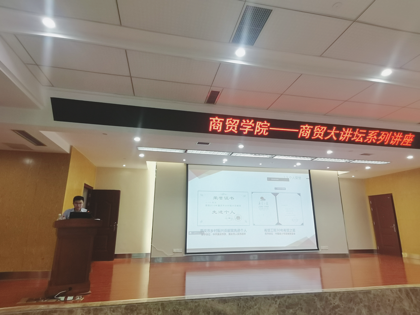 为推动本科创新创业教育,培养高质量“双创”人才,促进学院学生高质量就业。澳门pg官方电子平台特邀优秀校友重庆西线科技有限公司、重庆火炬云创科技有限公司、荣昌区古思特创客空间、荣昌区火炬云创科技企业孵化器总经理龙水维为商贸学子作题为“科技孵化器助力大学生创新创业”专题讲座。讲座由澳门pg官方电子平台副院长胡继宽主持。