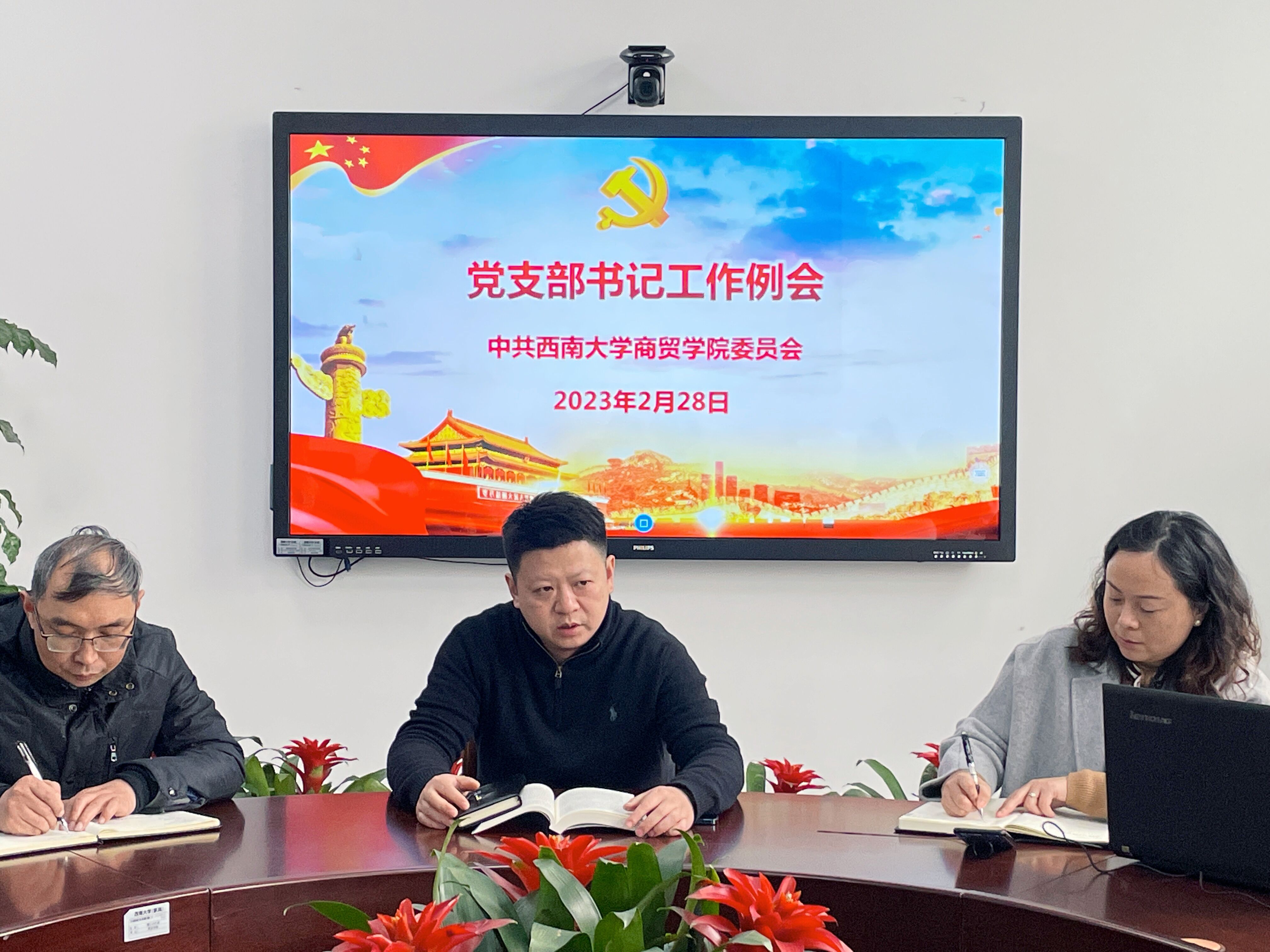 2月28日,澳门pg官方电子平台党委召开2023年春季学期首次党支部书记工作例会。学院党委书记王熹,党委副书记、纪委书记兰英及教工支部、学生支部全体支部书记参会。会议由王熹主持。