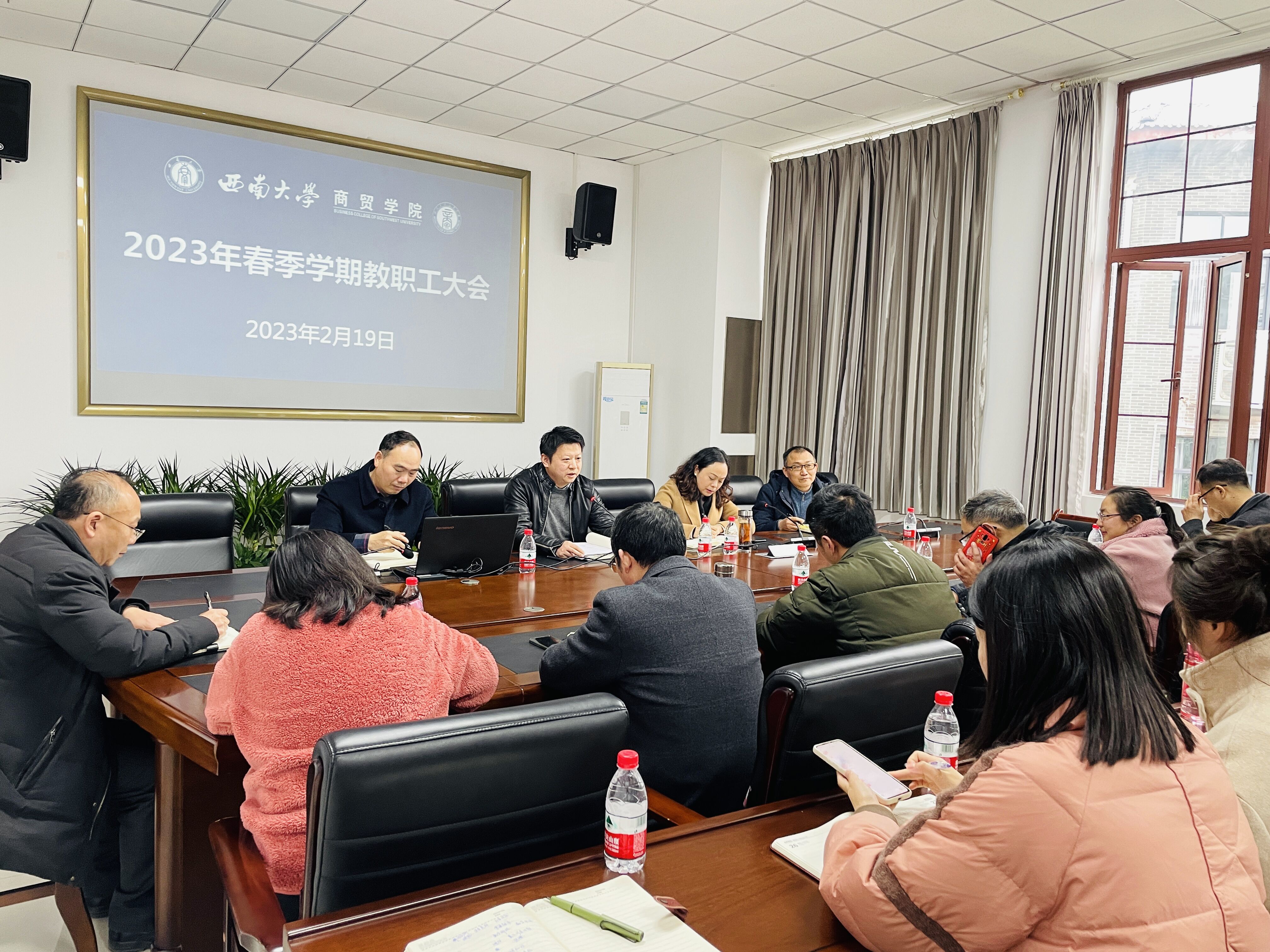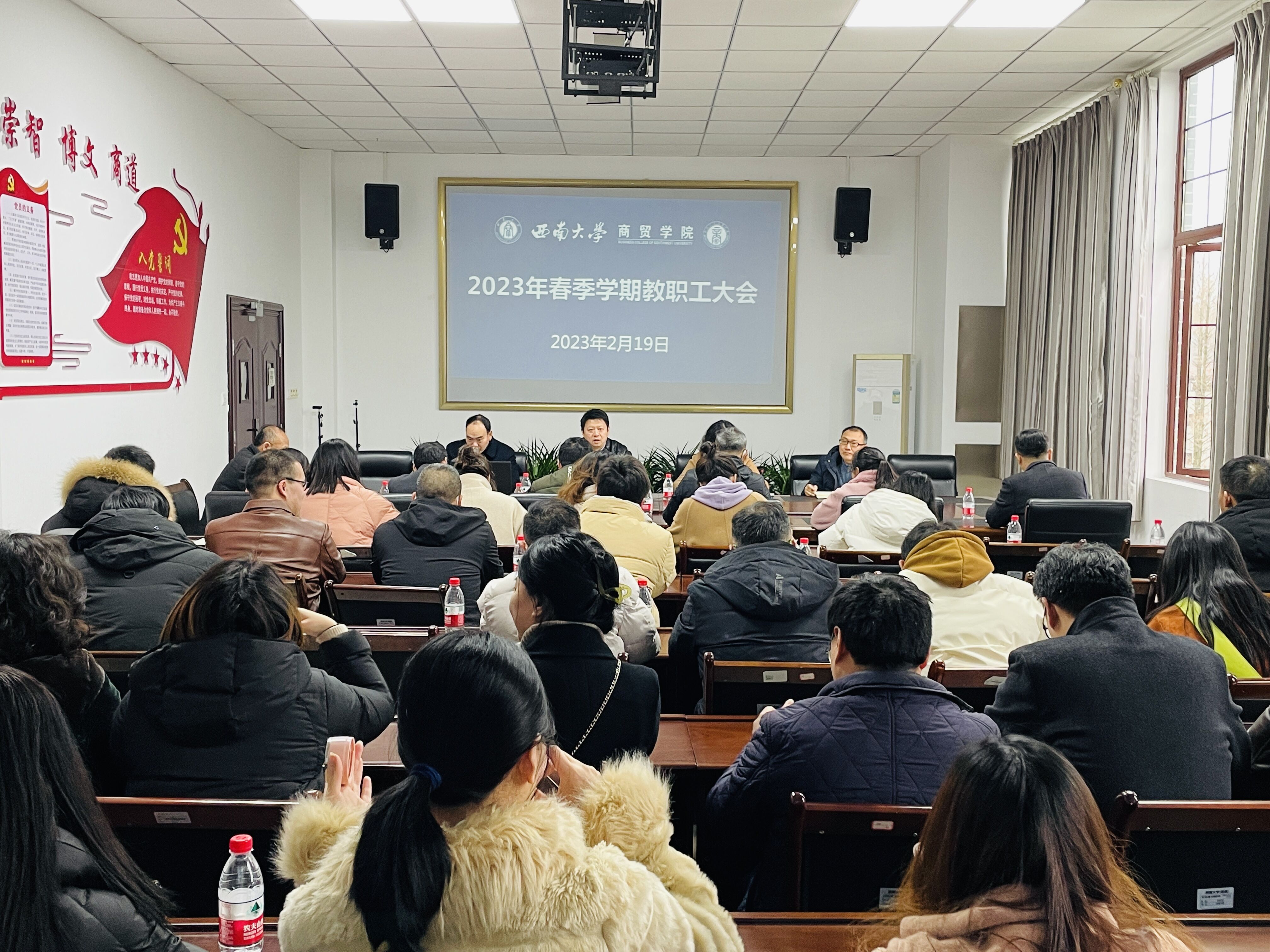 2月19日下午,澳门pg官方电子平台召开2023年春季学期教职工大会,安排部署新学期主要工作。全体教职工参加会议,学院党委书记王熹主持会议。