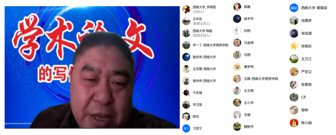 作为中国国外农业经济研究会2022年会暨学术研讨会重要组成部分的“期刊面对面”,12月8日-12月11日以“学术论文的写作与投稿”系列讲座的形式在“云端”顺利举行,讲座分别由学院李晓阳院长及韩毅副院长主持。中国社科院农村发展研究所潘劲研究员、《中国农村观察》《中国农村经济》编辑部副主任陈秋红研究员、《改革》杂志社执行总编辑文丰安教授、《农业技术经济》《农业经济问题》社长吕新业研究员、澳门pg官方电子平台期刊社社长张陈副研究员、《经济评论》主编叶初升教授等六位知名专家为广大师生分享了学术论文选题、写作及投稿经验。