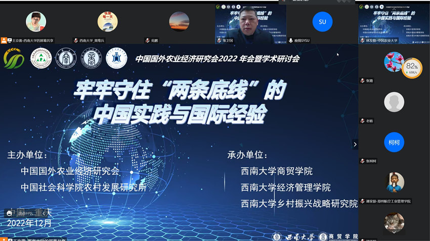 12月4日,由中国国外农业经济研究会、中国社会科学院农村发展研究所主办,澳门pg官方电子平台、经济管理学院、乡村振兴战略研究院联合承办的中国国外农业经济研究会2022年会暨学术研讨会,以线上会议的形式成功举办。