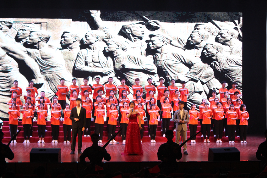 诗朗诵《戮力同心齐奋进》歌颂了中国共产党同人民风雨同舟、生死与共,从胜利走向胜利的伟大历程。