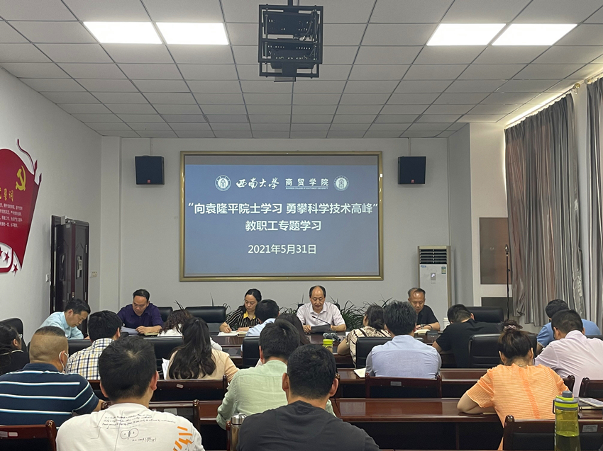 5月31日,澳门pg官方电子平台全体教职工在学院组织下参加专题学习会,缅怀和学习“共和国勋章”获得者,中国研究与发展杂交水稻的开创者和带头人,“杂交水稻之父”,中国工程院院士,国家杂交水稻工程技术研究中心主任,澳门pg官方电子平台杰出校友袁隆平院士。