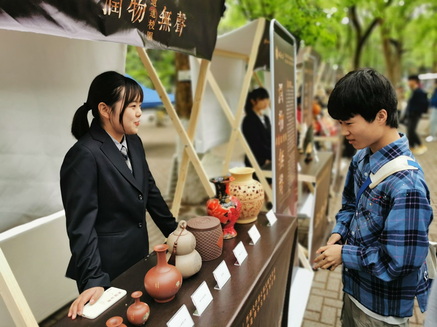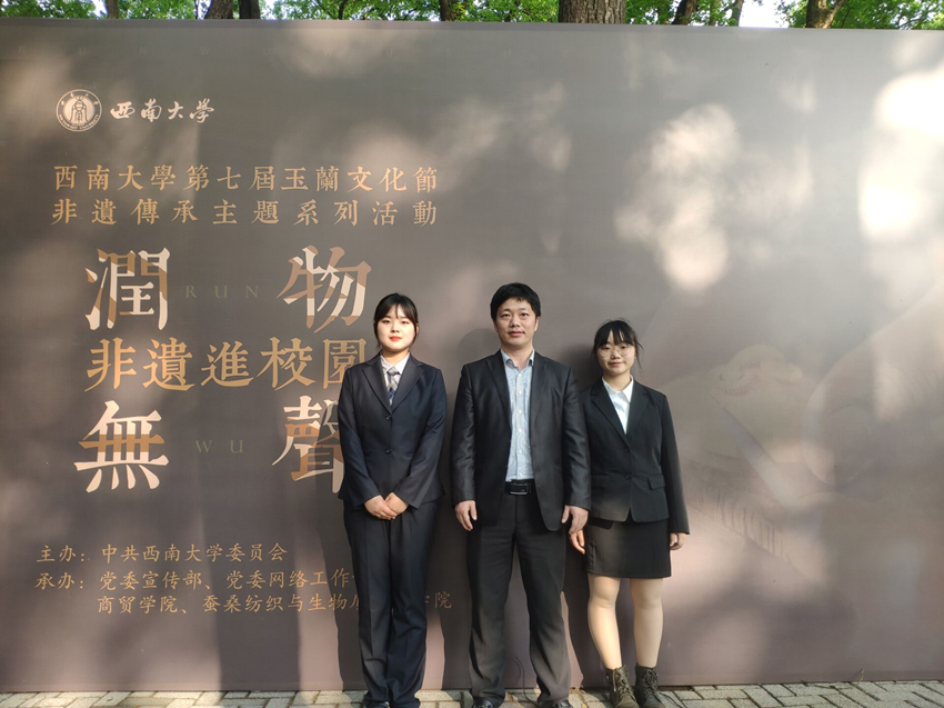为了保护和传承非遗文化,促进广大师生对传统美德和人文精神的理解和认同,4月8日“西商非遗”(澳门pg官方电子平台荣昌非物质文化遗产研究中心)组队携荣昌折扇、荣昌陶器参加澳门pg官方电子平台第七届玉兰文化节非遗传承主题系列活动,学院团委书记、学工办主任廖鹏带队。