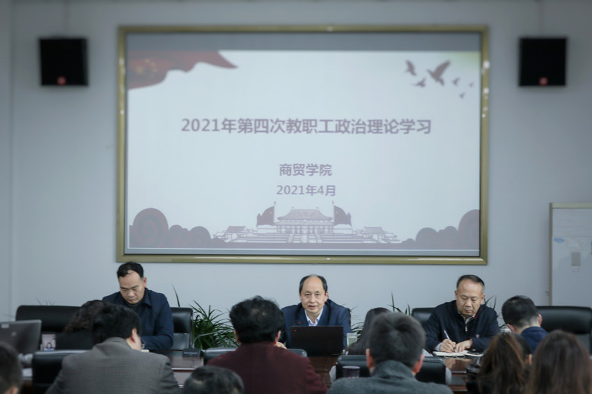 根据学校和学院的工作安排,学院于4月2日下午在8401会议室组织2021年第四次教职工政治理论学习。全体教职工参加,会议由学院党委书记周国安主持。