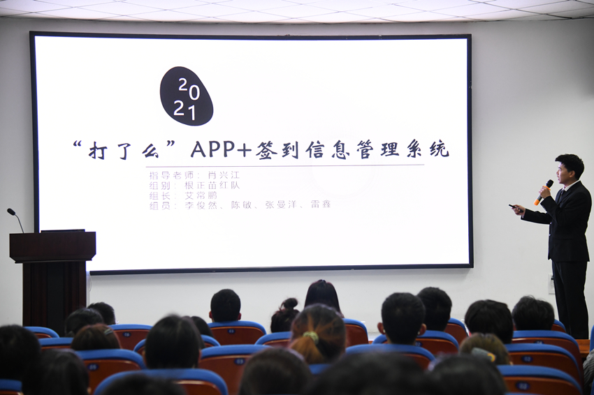 本次决赛,共有七支队伍参与角逐。“不许好耶队”将集成NFC技术运用到考勤管理应用之中,展示了软件的创新之处;“我们队”的签到软件基于安卓端与电脑端的结合,针对学生打卡进行软件设计;“软件设计扛把子队”的“今日打卡”App设计清新简约,围绕创新与自主进行设计;“进击的蛋蛋队”的“口袋考勤”App运用多种算法与程序,展示了软件的多功能用处;“The Debug”队通过分享他们的核心功能设计与收获感悟,展示了今日打卡App的形成与运用;“根正苗红队”别出心裁,通过现场演示客观地展示了“打了么”App;最后出场的“人生苦短,奈何不能remake队”详细介绍了软件的框架结构与功能,分享了“明日校园”App设计过程。