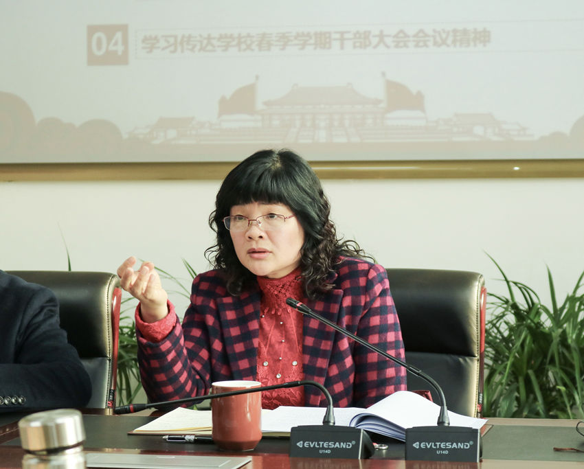 学院党委副书记、纪委书记兰英就新学期学生日常教育管理、2021届毕业生就业、学院大型活动和校友工作作了安排部署。