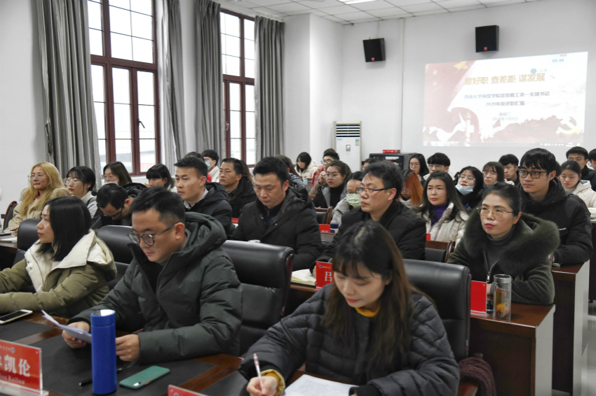 为进一步扎实推进学院党建工作,1月7日,学院在8401会议室召开2020年度党支部书记述职评议会。学院党委委员、党政领导、纪委委员、工会主席、各系(中心)负责人、党支部书记以及师生群众代表出席大会。学院党委书记周国安主持会议。