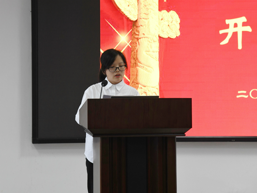 学生代表杨思思代表培训班全体学员立下承诺:端正入党动机和学习态度,珍惜学习机会,在结业时交上完美的答卷。