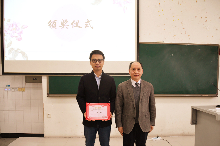 学院党委书记周国安为一等奖获奖教师颁奖