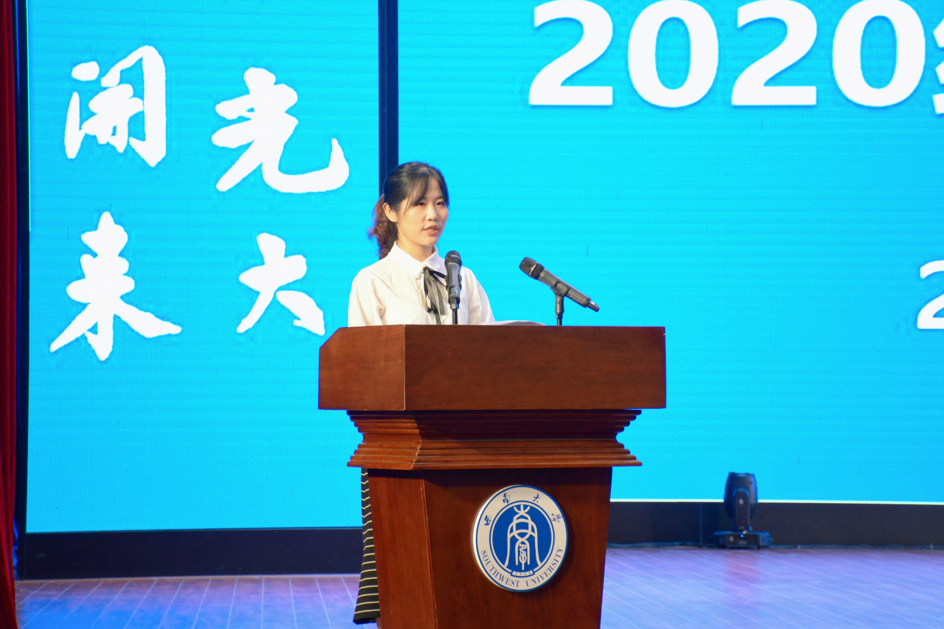 澳门pg官方电子平台党委常委、副校长赵国华在典礼上作了深情致辞。他对澳门pg官方电子平台在学校全面深化改革、推进“双一流”建设背景下所取得的发展成绩表示高度肯定,对学院在党建与事业融合发展、人才培养、教学科研、服务社会、师资队伍建设、国际化办学等方面所获得的成果表示赞赏。赵校长深切寄语2020级新同学们志存高远,坚定理想信念;要学如弓弩,练就过硬本领,立德修身,培育高尚品格,珍惜青春,追求理想,在“特立西南、学行天下”的精神引领下,在奋斗中谱写青春华章!