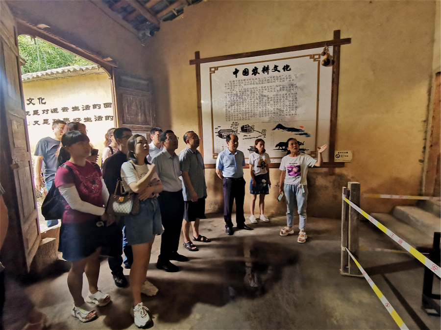 参加社会实践活动的全体师生在驻村干部古路镇党委副书记、镇长段家宁的带领下实地考察了观峰村的相关优势产业。在考察中,段镇长向大家详细介绍了观峰村乡村旅游、基础建设、资金互助社、集体经济、民俗文化特色项目等情况。同时,他还详细介绍了村内电商产业的发展情况,包括线下的电商运营和线上APP运营情况。段镇长说,观峰村计划以电商发展为抓手,推动优势产业,带动村域经济、镇域经济全面发展。