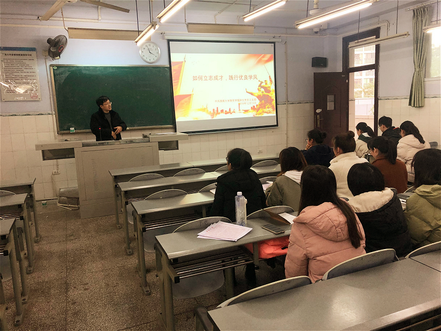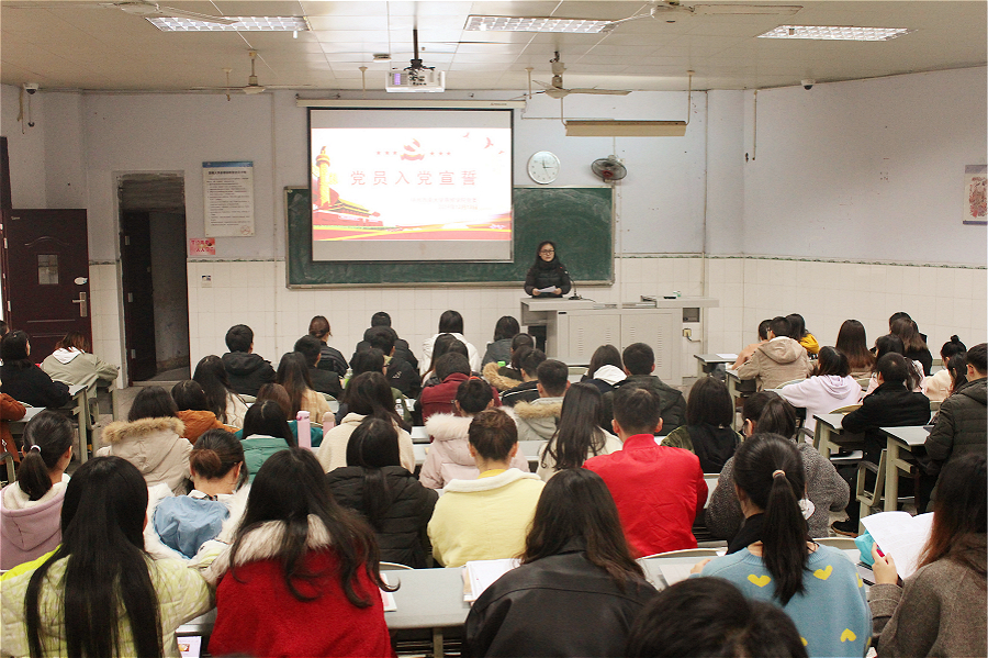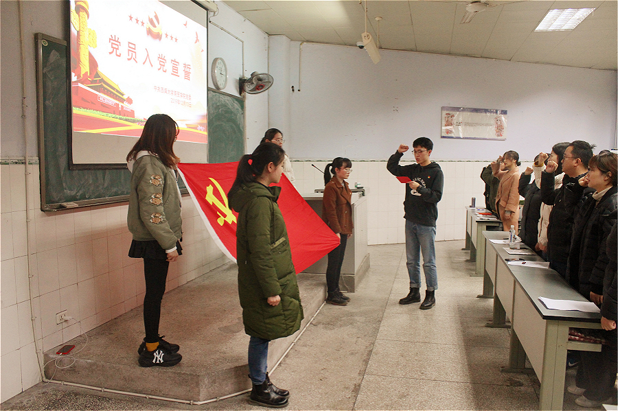 12月13日,学院秋季新发展党员入党宣誓仪式在1108教室隆重举行,各学生党支部书记、全体党员出席仪式。