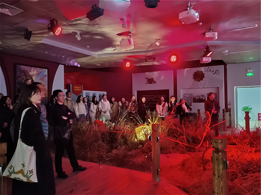 在讲解员的带领下,大家来到三楼展厅,体验“391”高地战争还原现场。身临其境地感受战争的残酷激烈和邱少云同志严守革命纪律,忍受烈火焚身的高度自我牺牲精神。