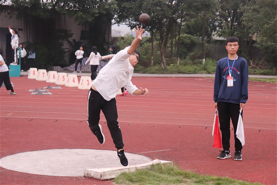 男子铅球第一名18信管1班张自强