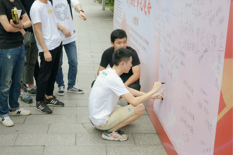 会后,全体毕业生党员来到教学楼前,在展板上手写寄语,为学弟学妹赠言,为母校母院祝福。