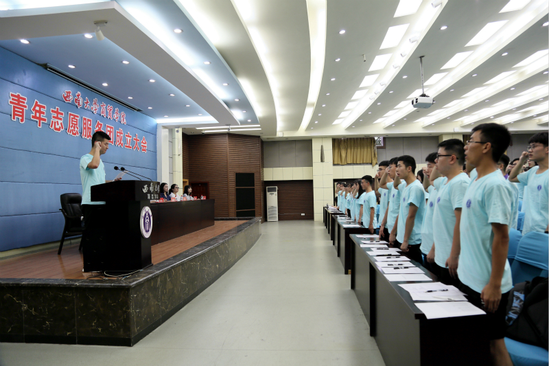 6月12日下午举行了青年志愿服务团成立大会。学院党委书记周国安,院党委副书记、纪委书记兰英,院团委书记廖鹏及全体辅导员出席了大会。