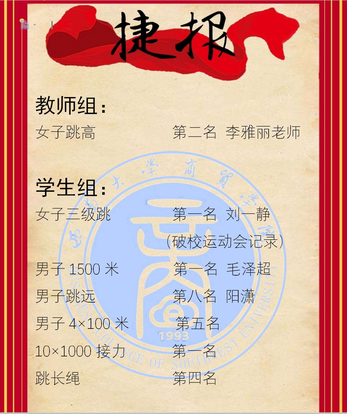 本届校运会4月19日澳门pg官方电子平台学生获奖情况如下: