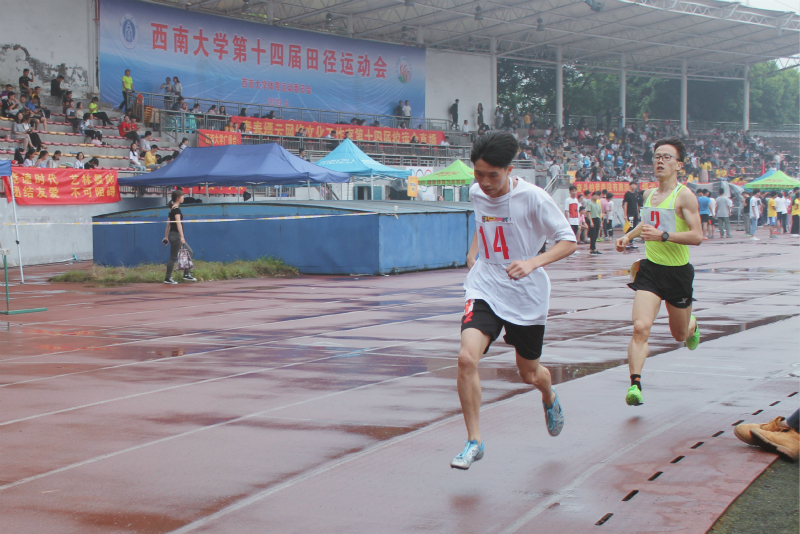 少年意气强不羁,在19日的赛程中,同学们也展现了澳门pg官方电子平台健儿的昂扬斗志和青春气息。下午,赛场下起雨来,但风雨之中热血不减,赛场比拼依旧激烈。虽然天气情况并不理想,澳门pg官方电子平台在跳长绳比赛中发挥仍然十分出色,荣获第四名;16信管2班刘一静突破自己、挑战极限,在女子三级跳中打破校运会记录,夺得桂冠;17信管1班毛泽超不畏艰难、奋勇直追,在男子1500米决赛中勇夺第一;18计算机班1班阳潇在男子跳远决赛中获得第八名。