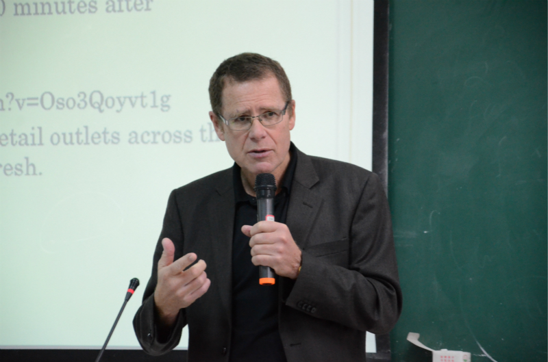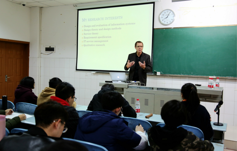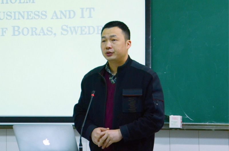 11月7日上午,来访我院的瑞典布罗斯大学斯蒂芬·克龙霍尔姆(Stefan Cronholm)教授走进课堂为2016级信息管理与信息系统专业学生讲授了一堂“商业与电子商务”课程,信息管理系系主任杜治国副教授出席,曹璐老师主持并进行翻译。