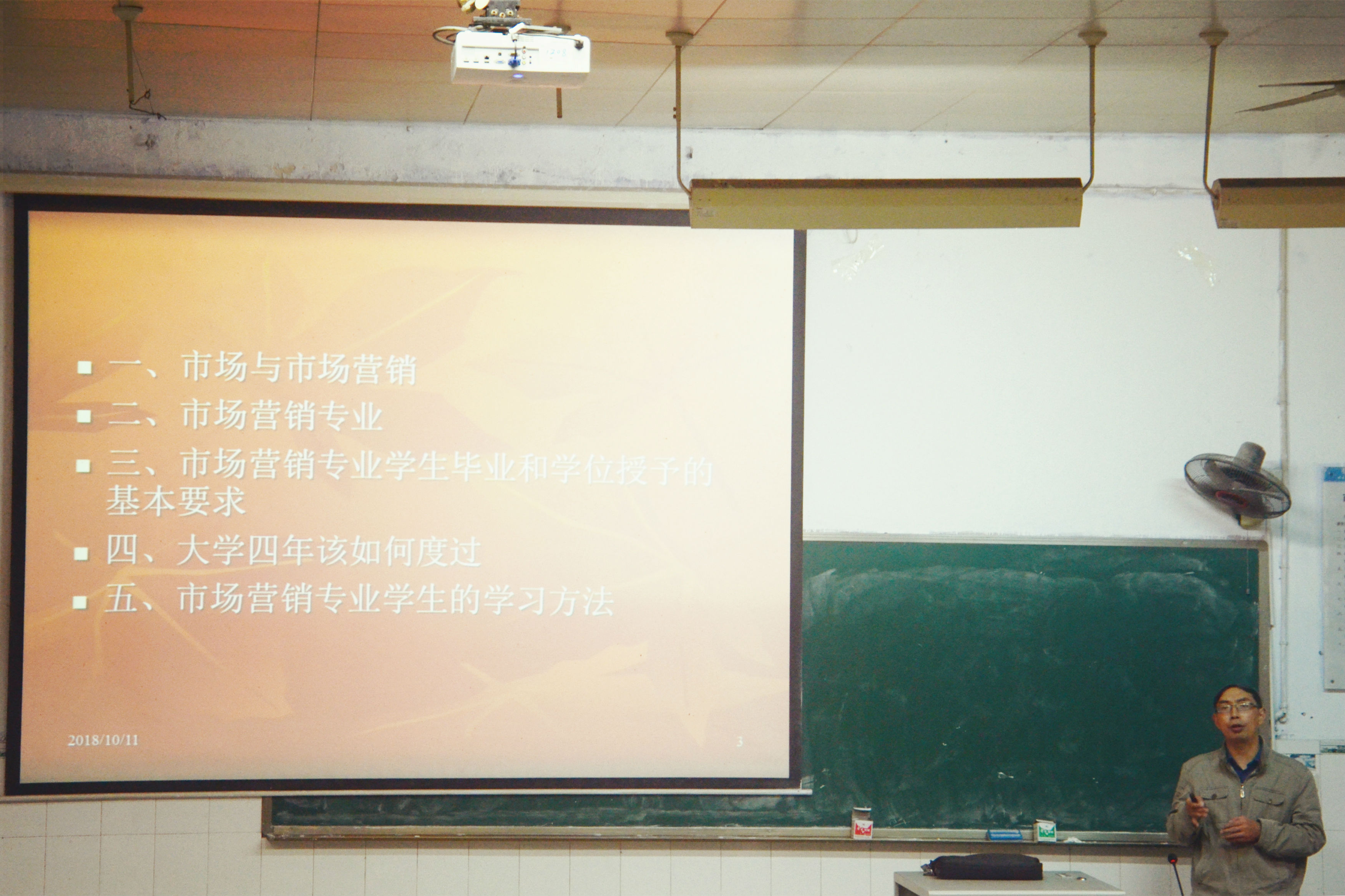 在11日晚的市场营销专业教育专题讲座上,院长助理、市场营销系主任姚文副教授从市场与市场营销、市场营销专业介绍、学位授予要求、大学规划以及专业学习方法这五个方面展开讲座。他介绍了市场营销专业的发展历程和课程体系,明确地指出了该专业的人才培养要求和目标,强调了市场营销专业在当今信息大数据时代背景下所呈现的新的专业特色。同时,姚主任向同学们介绍了市场营销专业的人才培养方案和学习方法,希望同学们在此基础上规划好自己的大学学习生活。