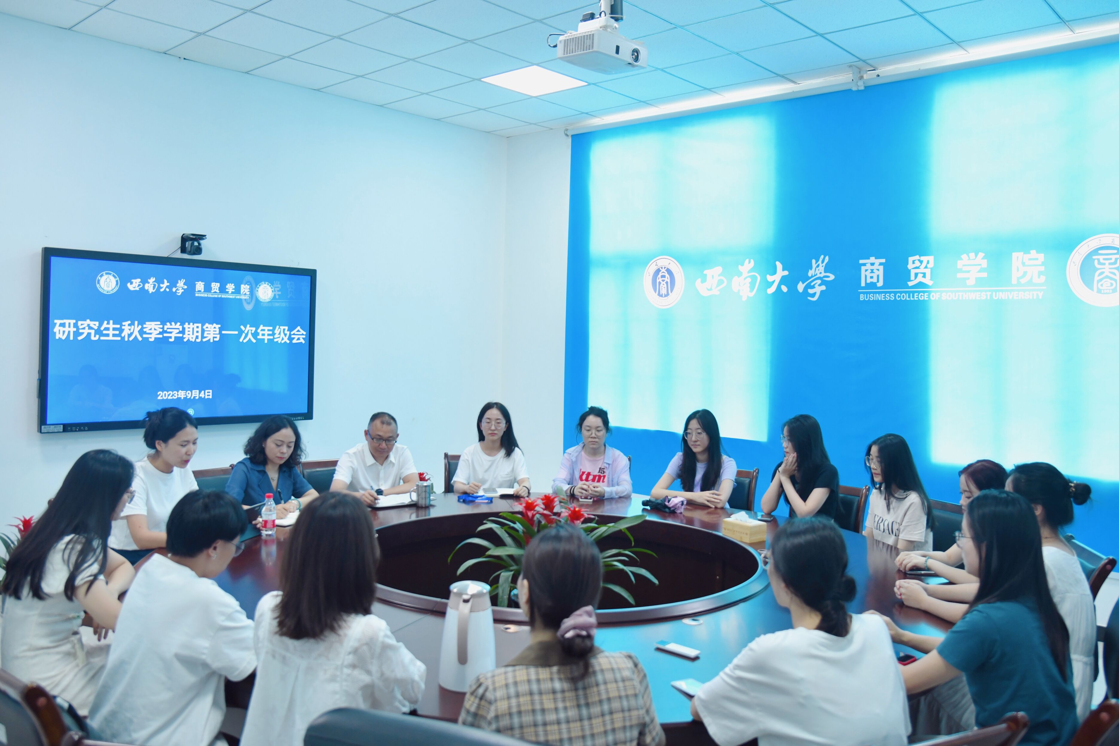 9月4日,澳门pg官方电子平台2023年秋季学期第一次研究生年级大会在8403会议室召开。学院党委副书记、纪委书记兰英,副院长韩毅,研究生教学秘书王亦君及全体在校研究生参加此次会议。研究生辅导员李雅丽主持会议。