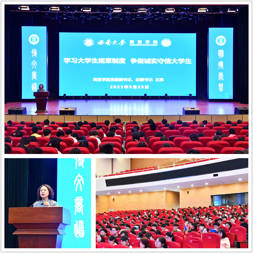 学院党委副书记、纪委书记兰英带领新生学习大学生规章制度