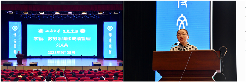 学院教务办公室主任刘光英带领新生进行教务知识学习