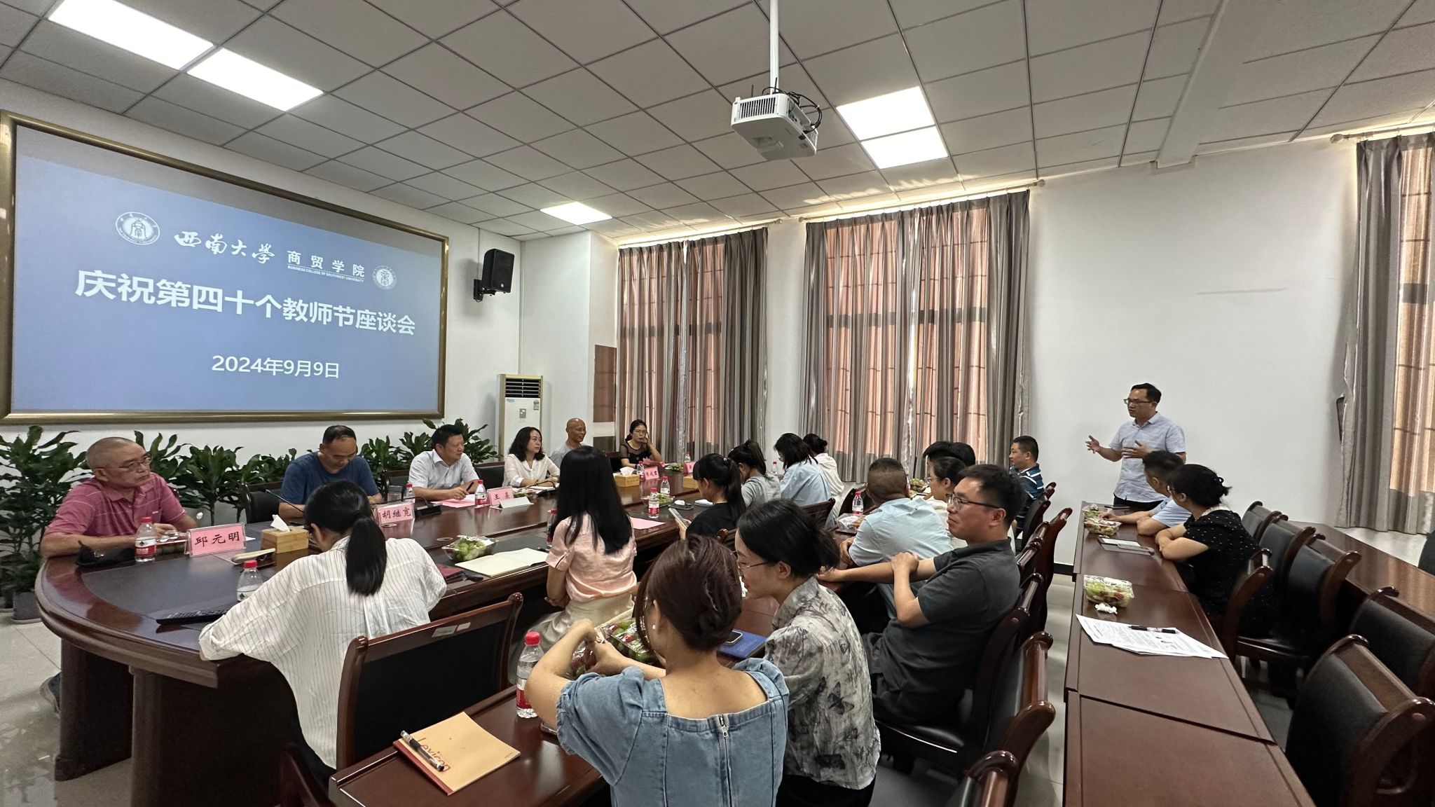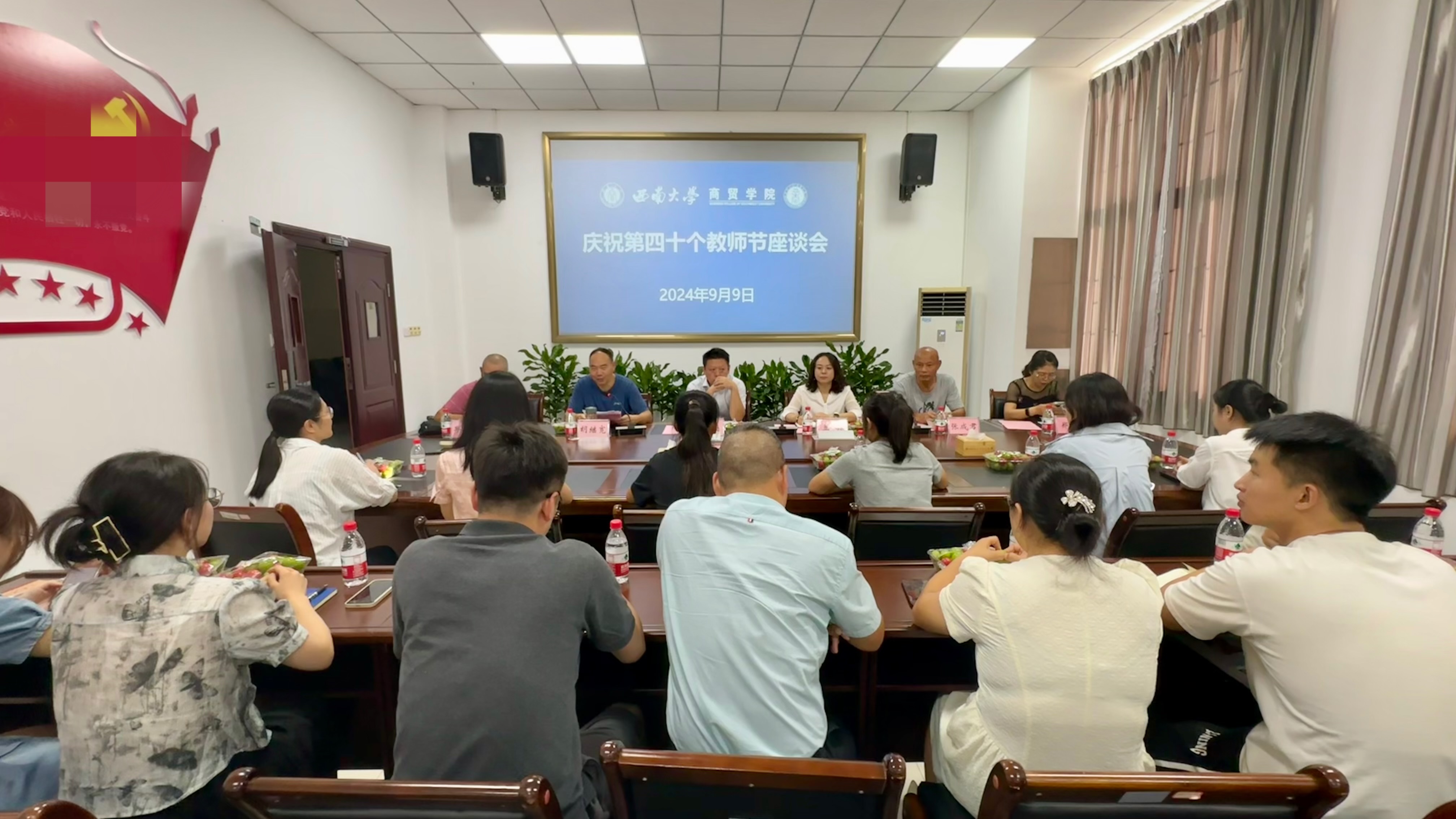9月9日下午,澳门pg官方电子平台于8401召开庆祝第四十个教师节座谈会。学院党委书记王熹、党委副书记 纪委书记兰英、副院长胡继宽出席座谈会,退休教师邱元明、张成君、郑蔚、唐俐,近两年新进教师和部分教师代表参加座谈会。座谈会由胡继宽副院长主持。