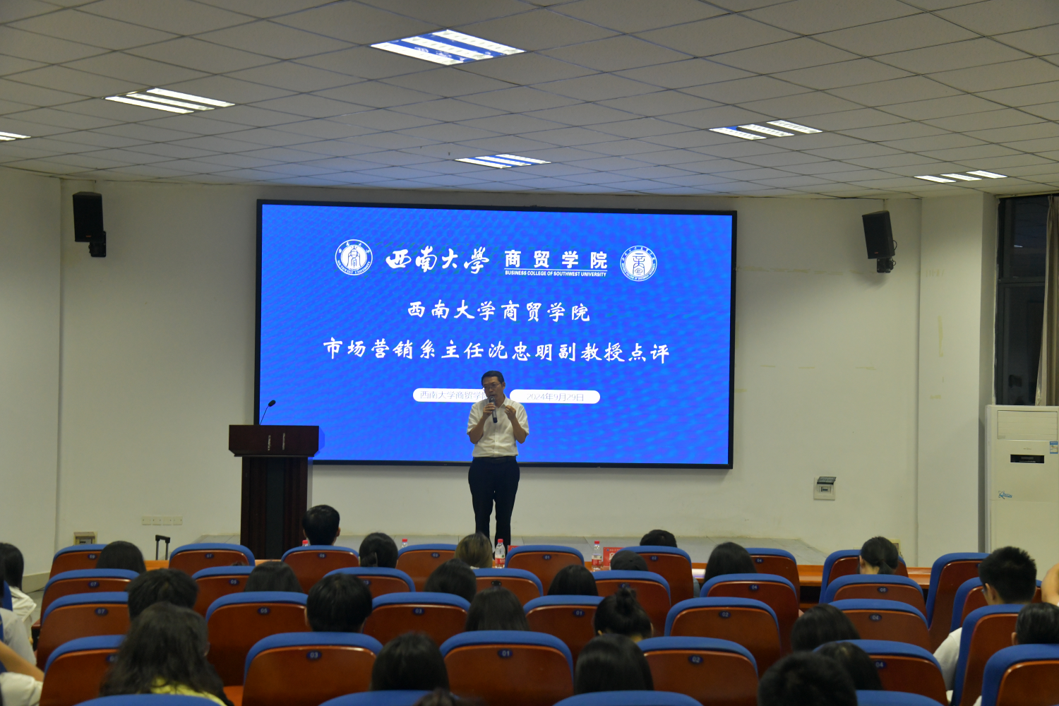 活动正式开始后,七支参赛队伍依次进行营销大数据展示,各队风采尽显。随后的问答环节中,评委老师针对选手汇报内容进行专业性提问,指出队伍中所出现的问题并给予建设性意见。比赛结束后,沈忠明副教授进行总结性发言,赞扬各队伍能够合理应用大数据响应案例分析,同时也指出不足并提出建议,希望同学们能利用数据工具与所学营销计划相结合起来,提高自身数据利用能力,不断进步。