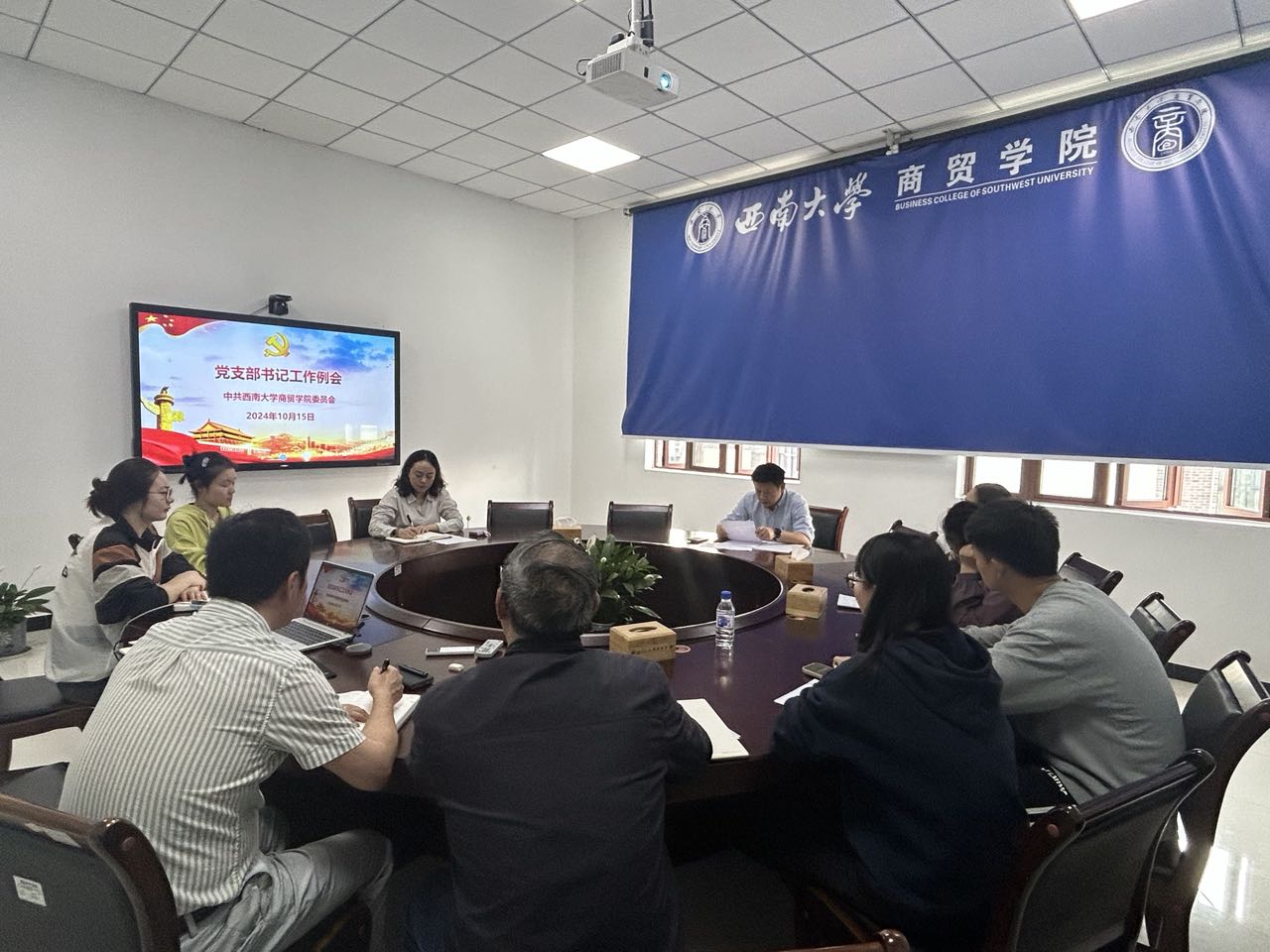 近日,澳门pg官方电子平台在8403会议室召开10月党支部书记工作例会,会议由学院党委书记王熹主持,党委副书记、纪委书记兰英及学院全体党支部书记参加会议。