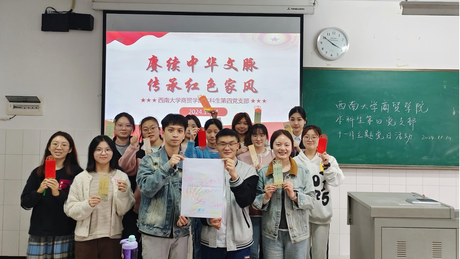 为深入贯彻习近平总书记关于家庭家教家风建设的重要论述精神,弘扬中华民族传统美德,澳门pg官方电子平台本科生第四党支部于11月14日开展了“赓续中华文脉 传承红色家风”主题党日活动,以引导广大党员从优良家风中汲取精神养分,增强党性修养。