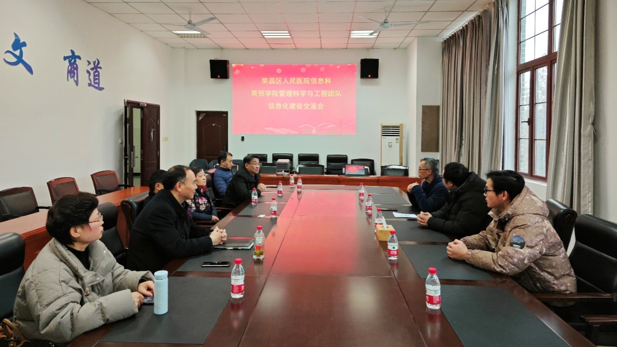 12月9日下午,荣昌区人民医院信息科主任刘代强一行应我院邀请,来到8405会议室开展交流活动。我院副院长胡继宽率管理工程学科部分教师及农工党校区支部成员热情接待,共同聚焦医院信息化问题深入交流。