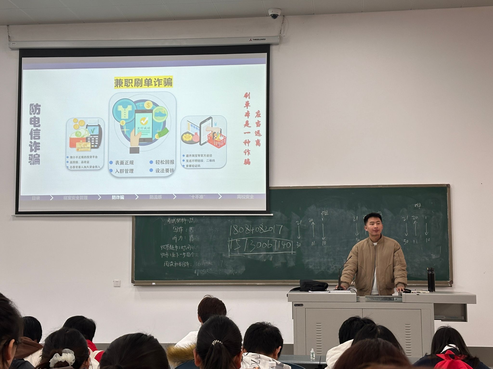 在离校安全主题年级会上,各年级辅导员要求同学们在离校前仔细检查门窗是否关闭、水电是否切断,确保不留任何安全隐患;通过分析真实案例并播放防诈骗宣传短片,提醒学生们提高警惕,防范电话和网络诈骗。同时,针对季节性高发的呼吸道疾病,老师们强调了保持良好卫生习惯的重要性,如常通风、勤洗手并在人多的地方佩戴口罩;提醒同学们注意回家途中的交通安全,避免乘坐非法运营车辆,确保平安到家。最后,要求同学们严格落实学校离、留校申请制度,离校径直返家,不在中途逗留。