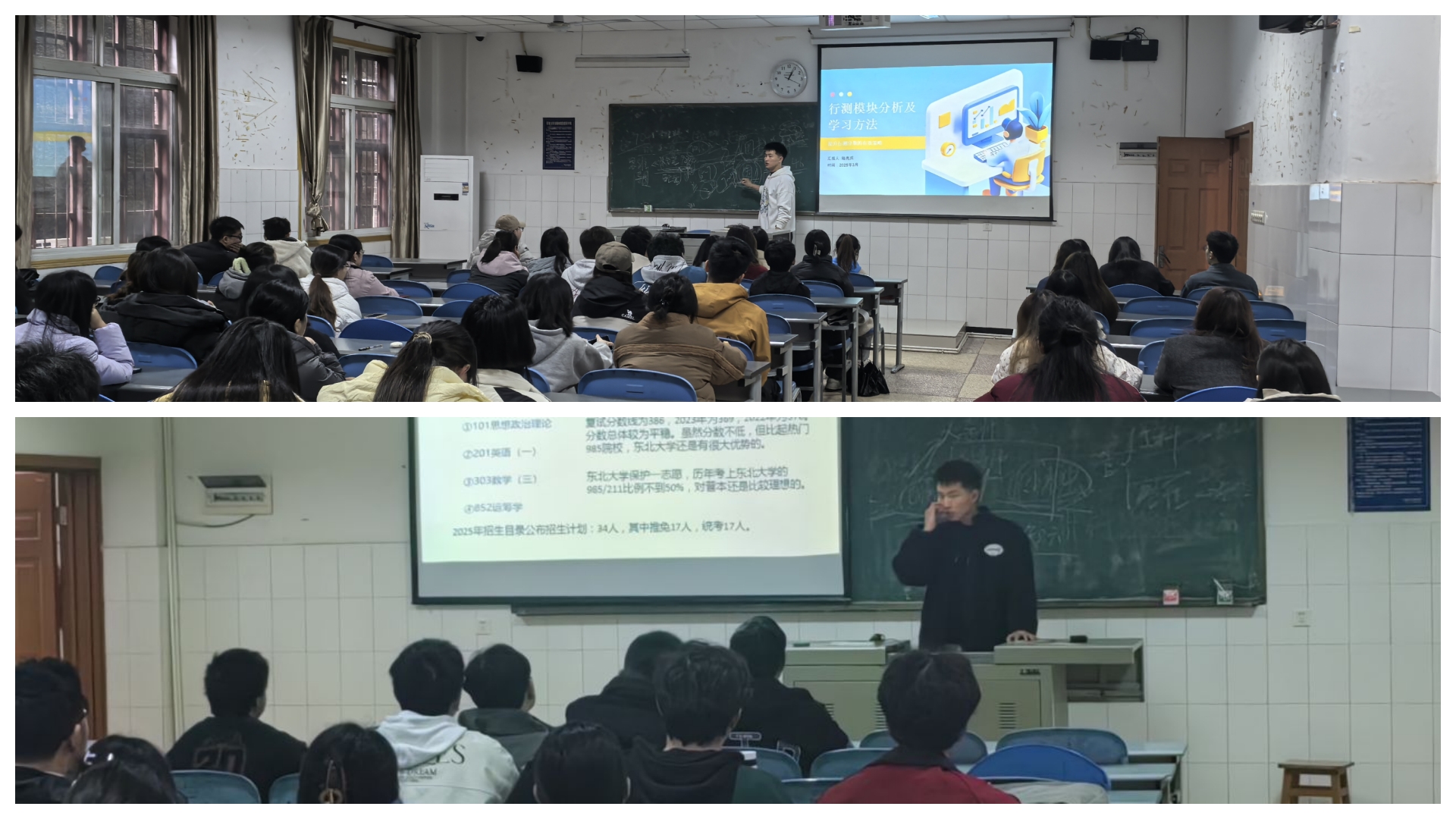 针对学生在职业发展方面的普遍困惑,学院2023级立足学生实际需求,精心构建靶向式职业导航体系。2023级辅导员陆亮兵精心策划“研途・公考・职场”三维赋能计划,同时组织本科生第二党支部的优秀党员,组建起专业的“职业发展导师团”。在考研指导模块,“导师们”深入剖析院校专业选择的门道以及高效备考策略;考公环节,细致揭秘岗位分析技巧与笔试关键要点;就业指导场次则聚焦于职业方向规划,为学生量身定制就业技能学习方案。该系列讲座累计服务学生达 210 人次,会后调研数据显示,参与学生的职业规划清晰度提升至90%。
