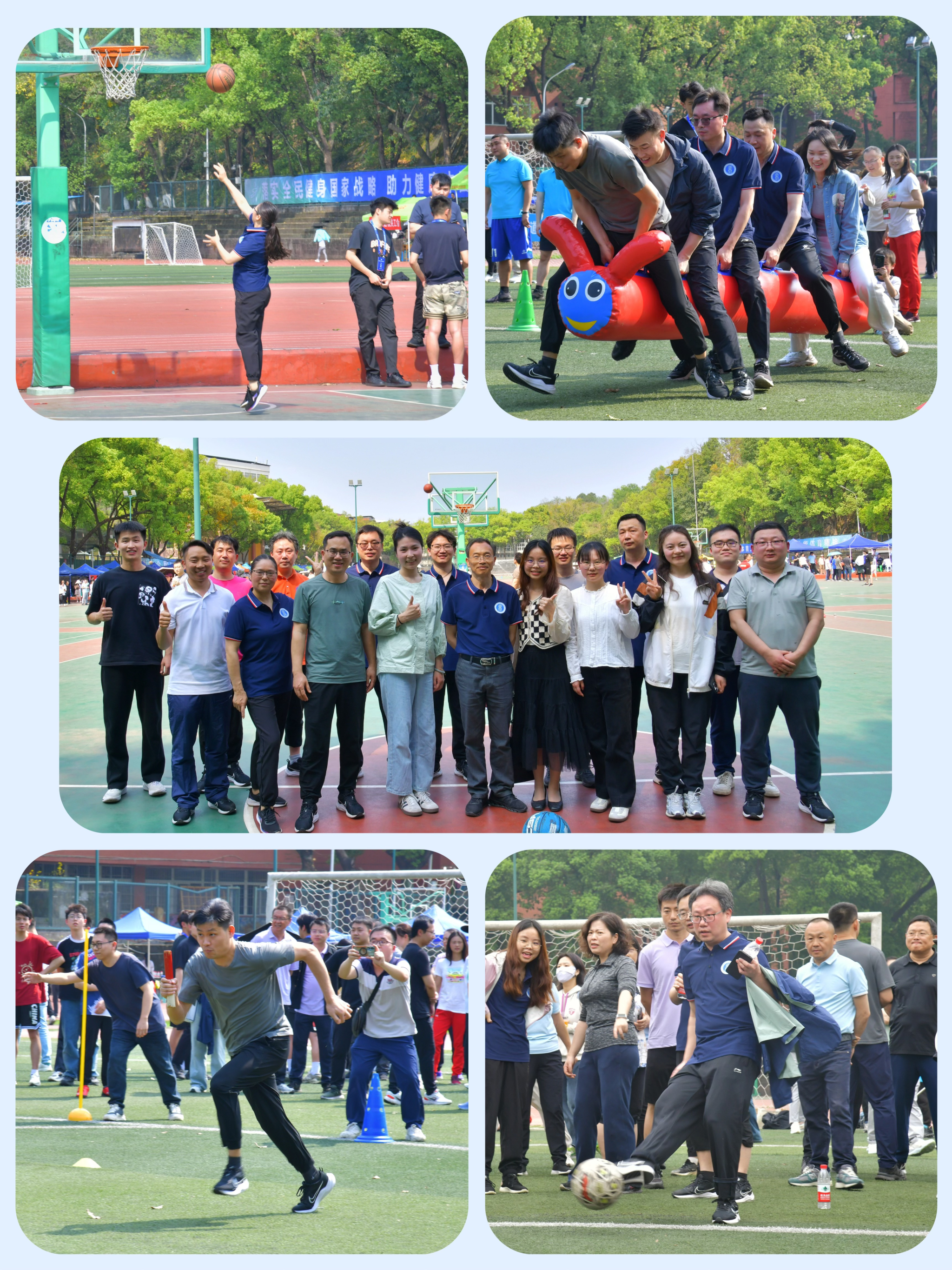 教职工项目中,平日里执笔育桃李的我院老师在男子10x50米接力赛、篮球运球接力赛等比赛全力以赴,协力同行,尽展商贸教师风采。