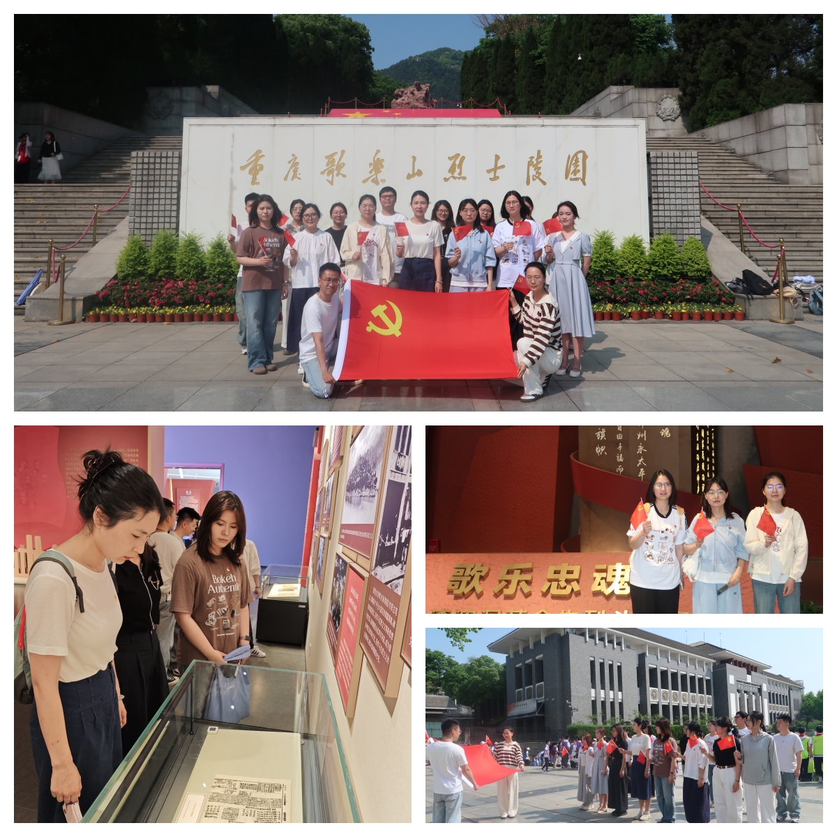 随后,同志们前往烈士陵园进行静默追思。面对巍峨的烈士纪念碑,全体同志神情肃穆,肃立默哀一分钟,深切缅怀为革命事业献身的红岩英烈,随后有序向烈士敬献鲜花。革命纪念馆内“华蓥山武装起义”“重庆谈判”等历史场景的还原,将那段波澜壮阔的岁月徐徐展开;泛黄的照片、珍贵的文物、震撼的影像,生动再现红岩烈士们抛头颅、洒热血的英勇事迹。红岩精神不仅是历史的丰碑,更是指引同志们前行的行动指南,激励着在场每一位学子传承红色基因,践行初心使命。