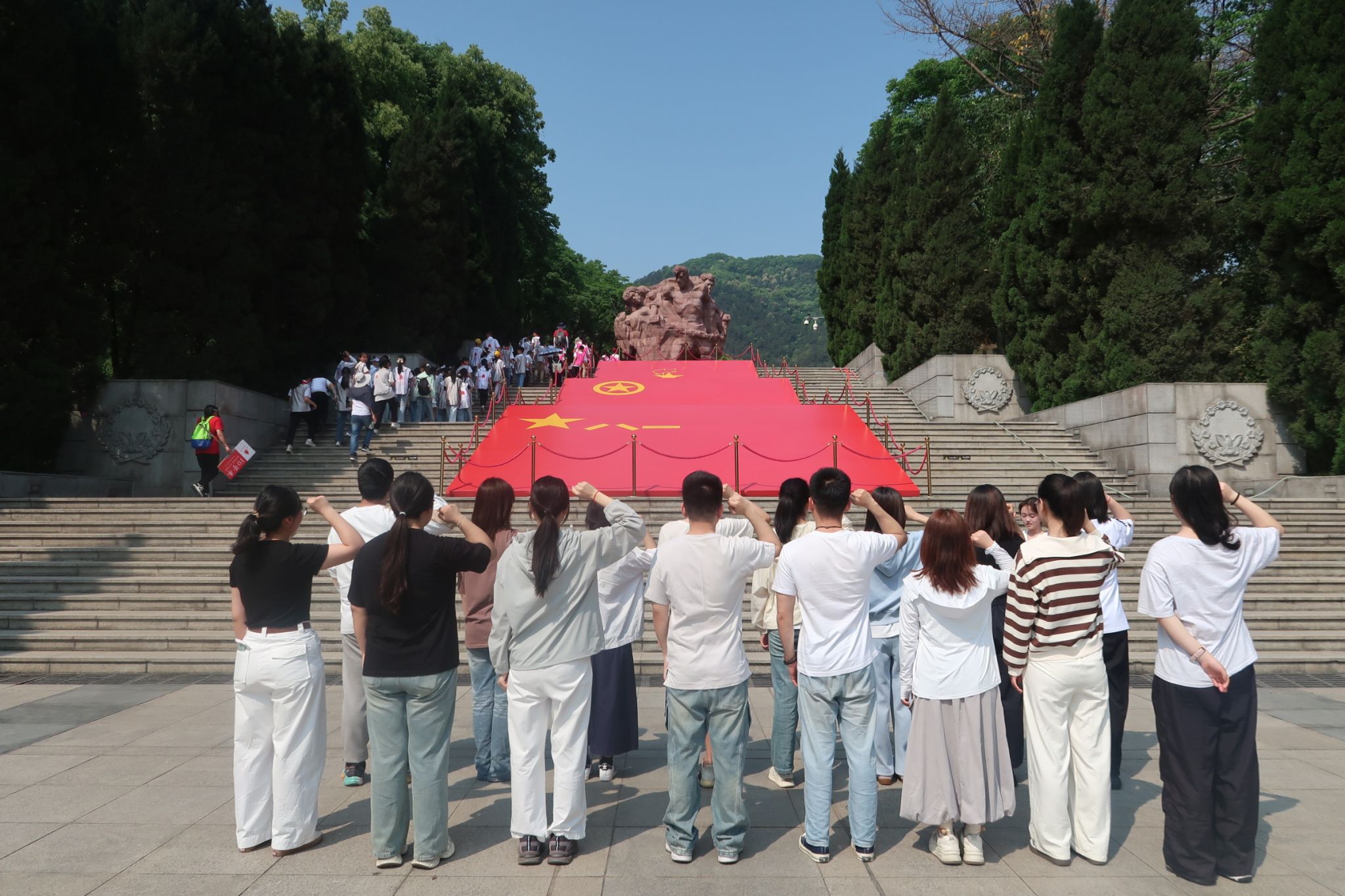 重庆歌乐山红岩魂广场上,在庄严的党旗下,同志们整齐列队,高举右拳齐声宣言:“我在此庄严宣誓:以红岩魂为脊梁,铭记历史;以烈士志为明灯,坚守信仰;以民族复兴为己任,砥砺前进。为民族富强而奋斗;为人民幸福而奉献;为真理正义而斗争……”激昂的誓言回荡在广场上空,彰显着新时代青年赓续红色血脉的坚定决心。