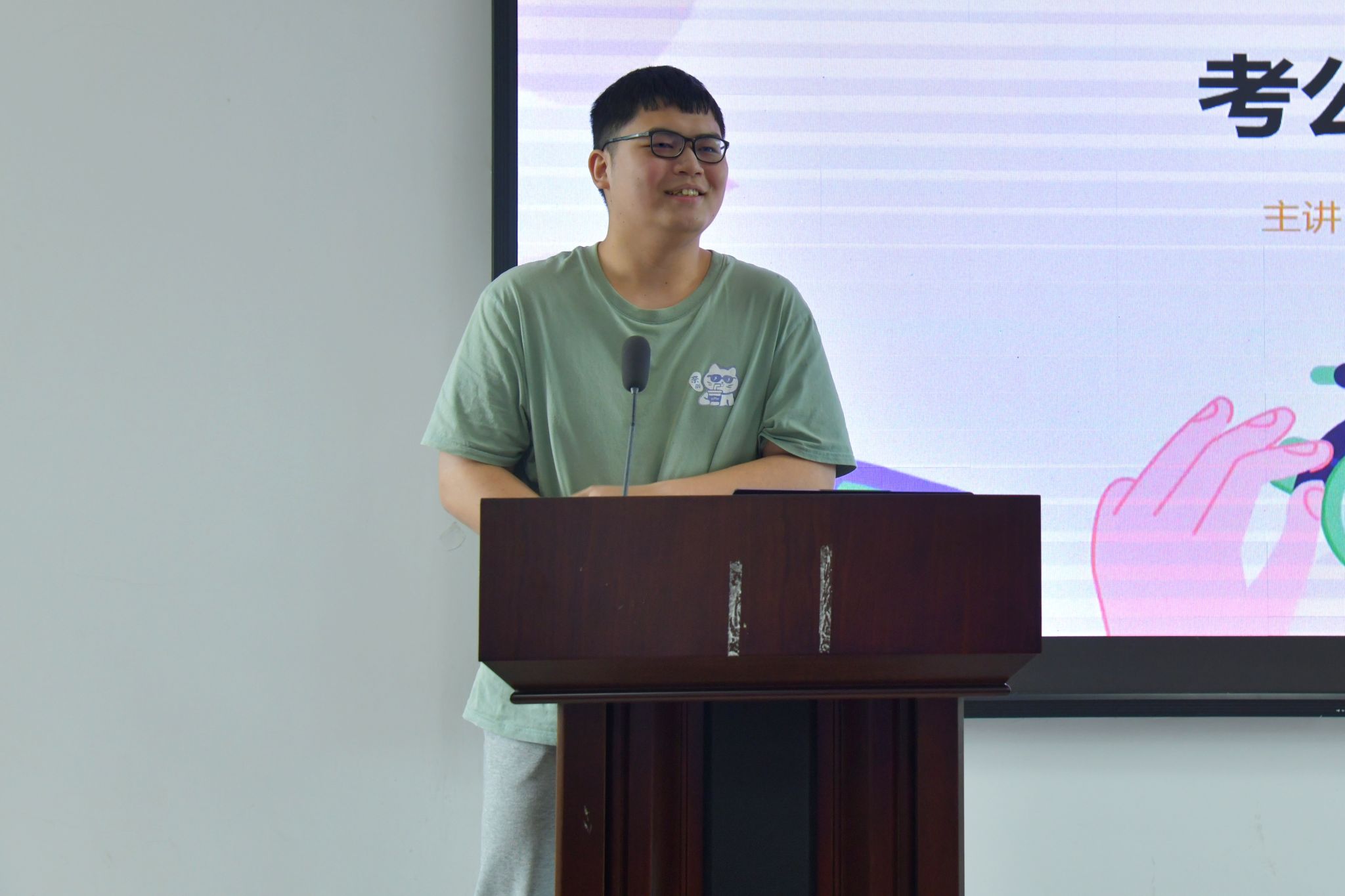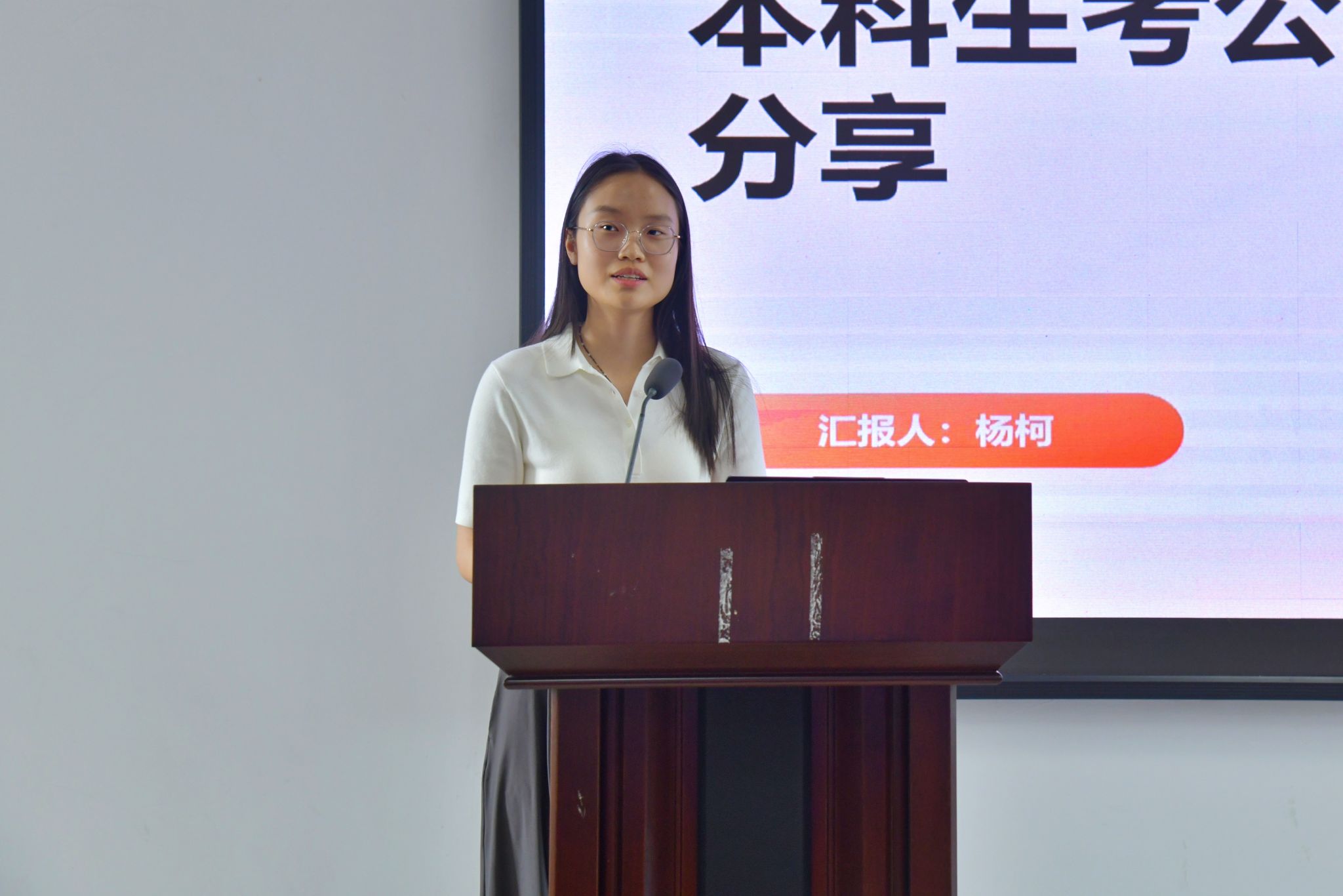 考公分享时,杨柯讲解备考策略与流程,强调心理调适。韦阳阳建议理性报考,提炼行测备考要点,并解析毕业论文写作规范。