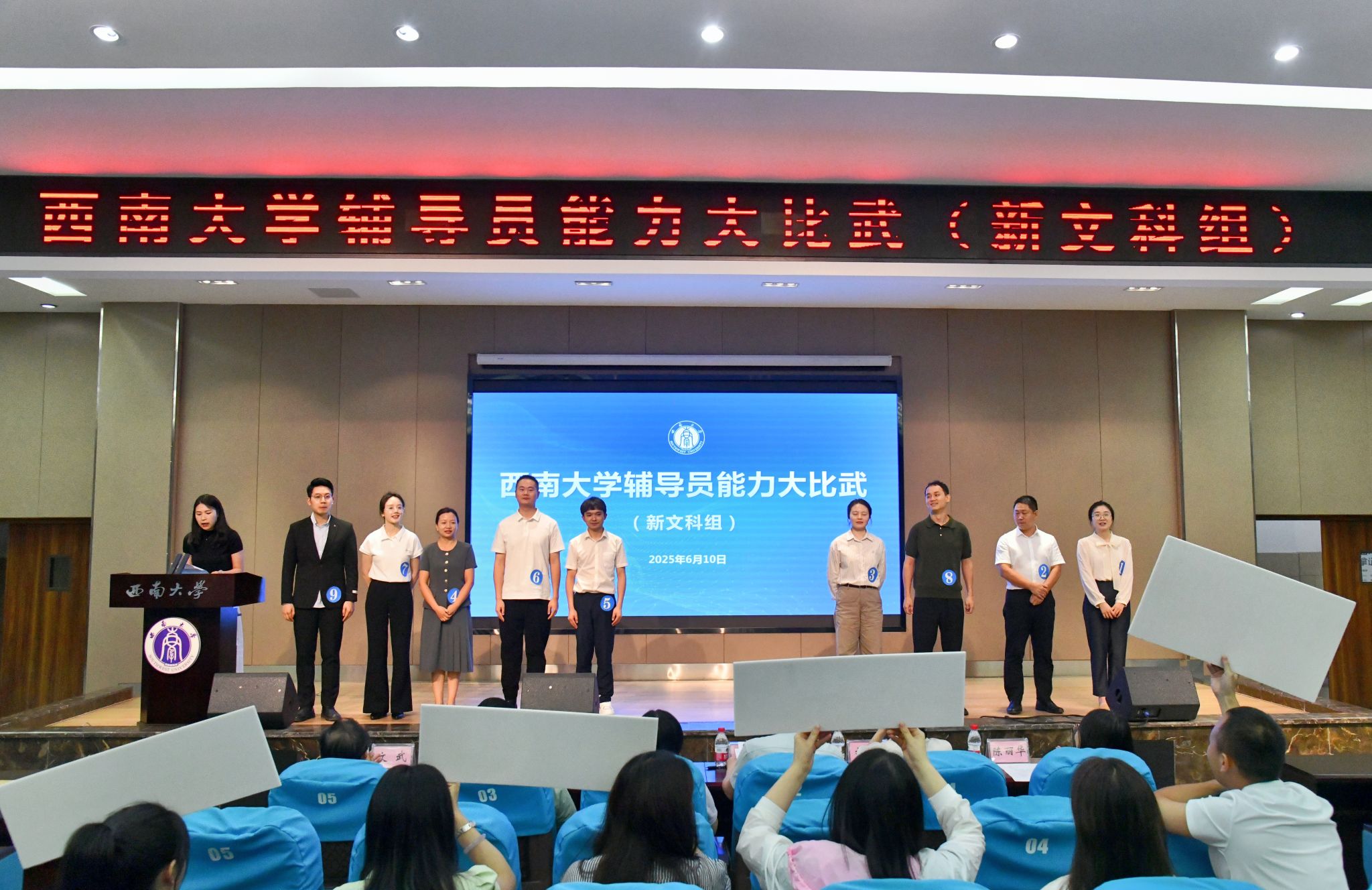 大比武邀请到荣昌校区党工委副书记 纪工委书记穆奎、动物医学院党委副书记 纪委书记罗丹、荣昌校区学生工作办公室副主任胡英担任评委,经济管理学院党委副书记李玉胜、国家治理学院党委副书记 纪委书记陈丽华、商贸学部党委副书记 纪委书记文武特邀出席。来自马克思主义学院、经济管理学院、国家治理学院、法学院和澳门pg官方电子平台的9名优秀辅导员代表同台竞技,充分展现了新时代辅导员的专业素养与育人担当。