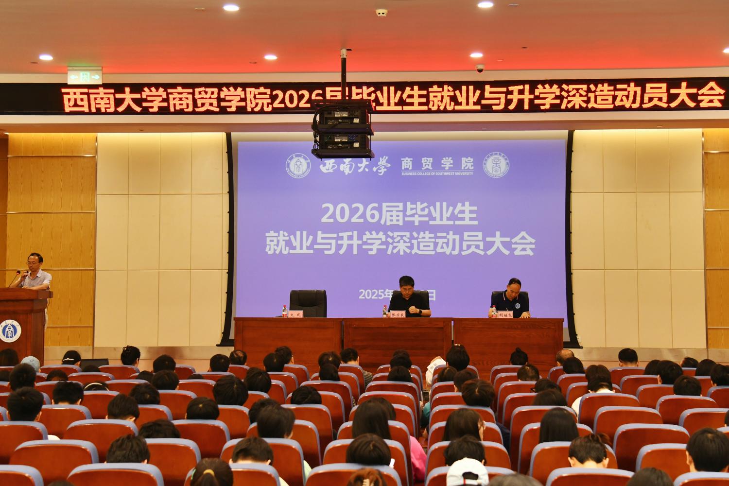 胡继宽副院长开展升学就业动员部署,深度阐释推免政策要义;勉励学子把握升学契机,淬炼学术修为;寄语学生锚定目标定位、厚植学科根基、把握关键时序节点,稳步踏上学术进阶新征程。