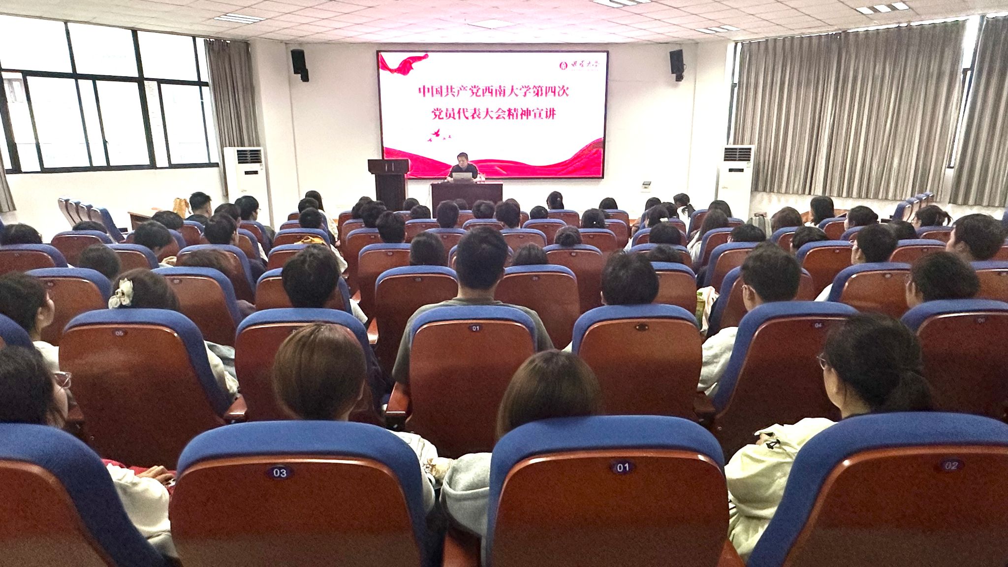 宣讲人系统地介绍了党代会主题、重大意义和主要成果,并说明报告起草过程,回顾了第三次党代会以来学校在党的建设、立德树人、学科专业、科学研究、师资队伍、社会服务、国际交流、内部治理、条件保障等九个方面取得的主要成就,并依据国家战略和学校、学院实际,对未来发展战略与重点任务作介绍。