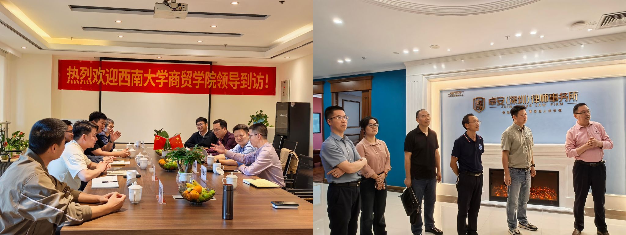 在云南晴空律师事务所和卓安(深圳)律师事务所,王熹一行与律所负责人、资深律师围绕法律行业人才能力需求、校企实践合作模式等话题展开深入交流。王熹详细介绍了学校的办学积淀和学院在经济、管理、法律等学科领域的交叉优势,强调学院注重培养兼具理论素养与实践能力的复合型人才。云南晴空律师事务所负责人王家明表示,当前商事纠纷、乡村招商引资等领域对跨学科法律人才需求迫切,欢迎学院推荐优秀学子到律所进行学习实践。卓安(深圳)律师事务所主任任忠孙表示,内卷时代,不论人才培养还是企业发展,都应该注重人文与科技的融合创新。