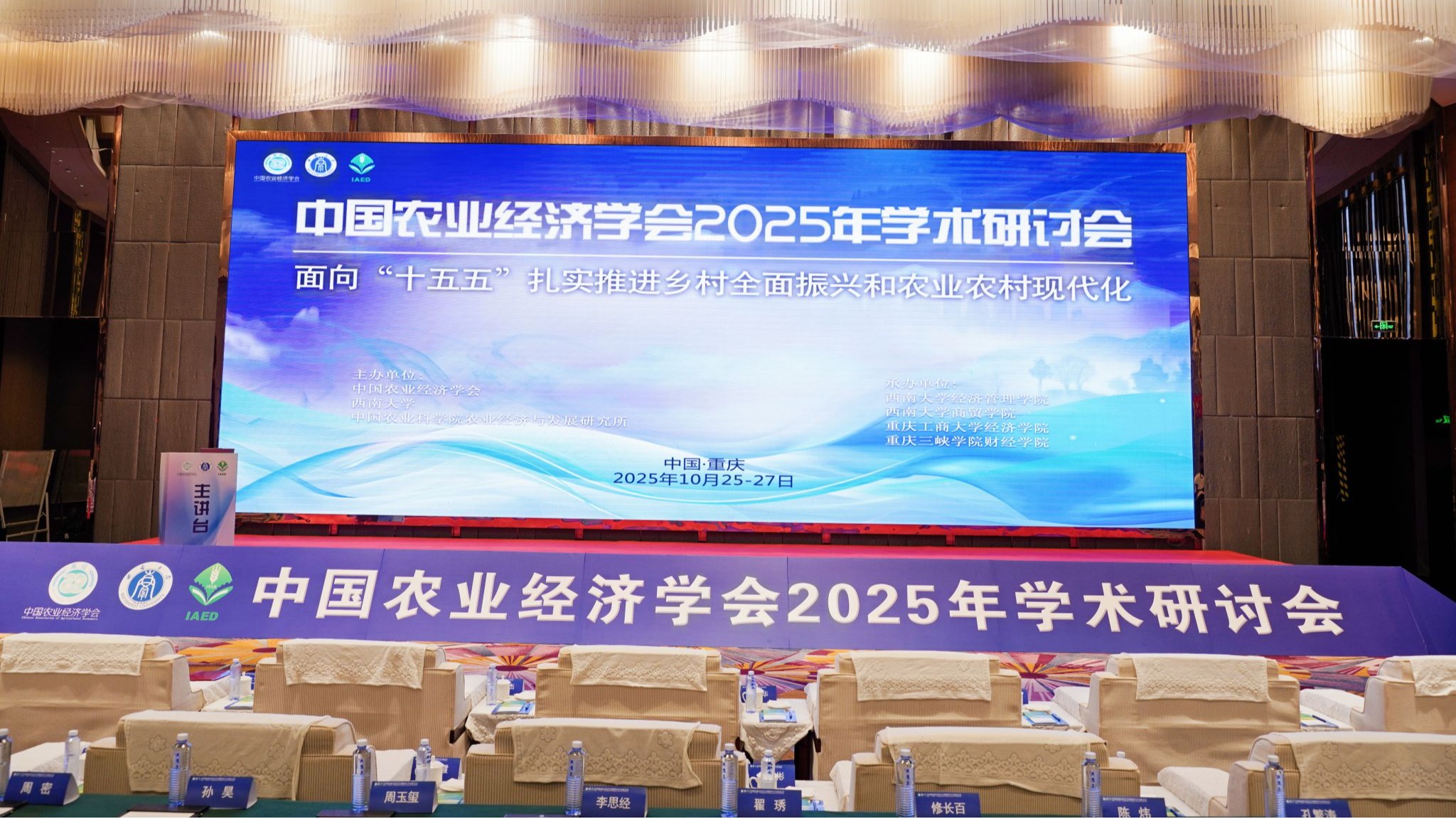 10月25日至27日,中国农业经济学会2025年学术研讨会在重庆举行。会议由中国农业经济学会、澳门pg官方电子平台、中国农业科学院农业经济与发展研究所联合主办。澳门pg官方电子平台协同澳门pg官方电子平台经济管理学院、重庆工商大学经济学院、重庆三峡学院财经学院联合承办。大会以“面向‘十五五’扎实推进乡村全面振兴和农业农村现代化”为主题,汇聚了来自全国各高校、科研院所及政府部门的600余名专家学者参与研讨交流。学院张应良院长代表学院全程参与会议策划与组织。青年教师张军、张建锋、张爽、周佳宁、刘艳、陈楠、任晓亚、王君也积极参会。