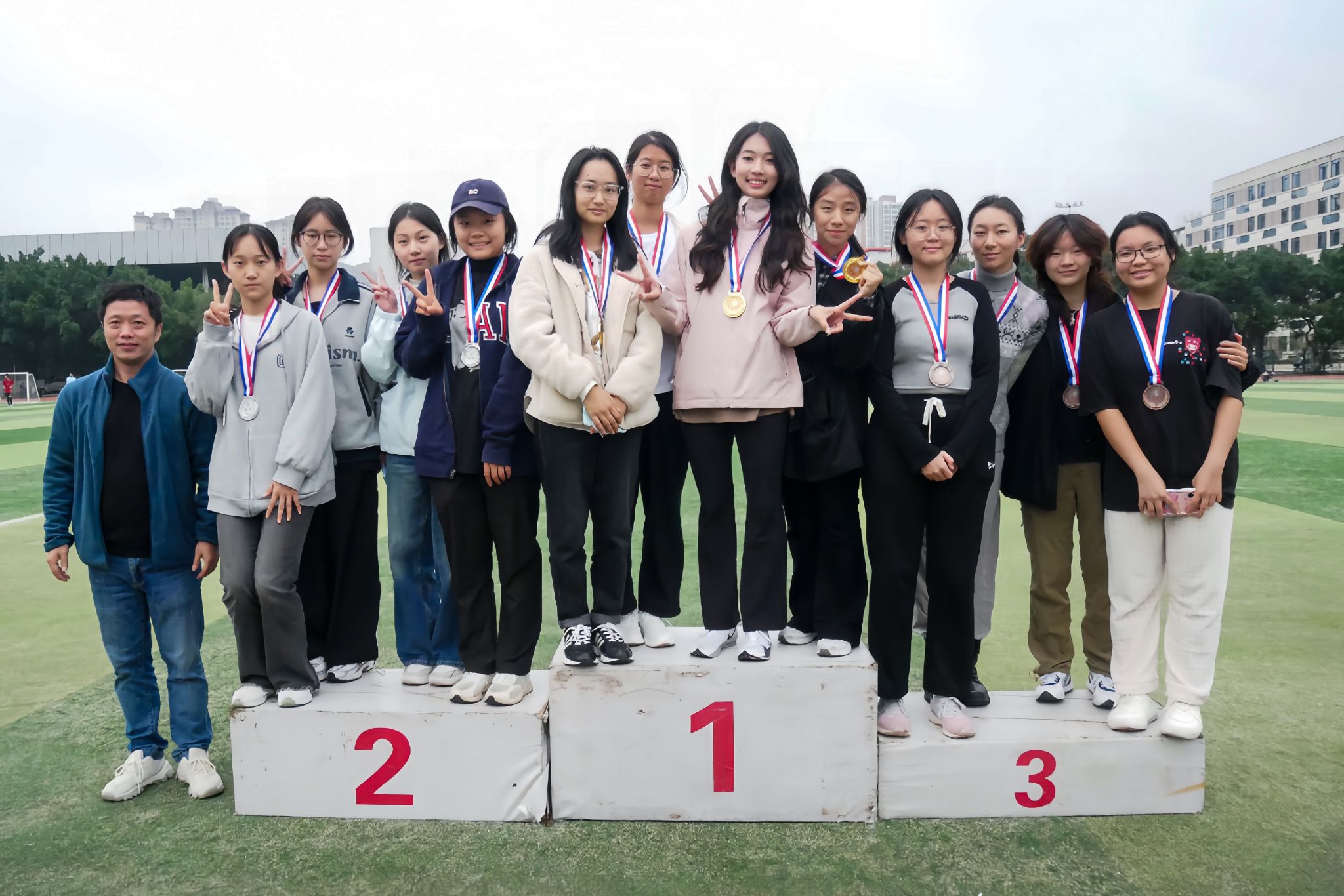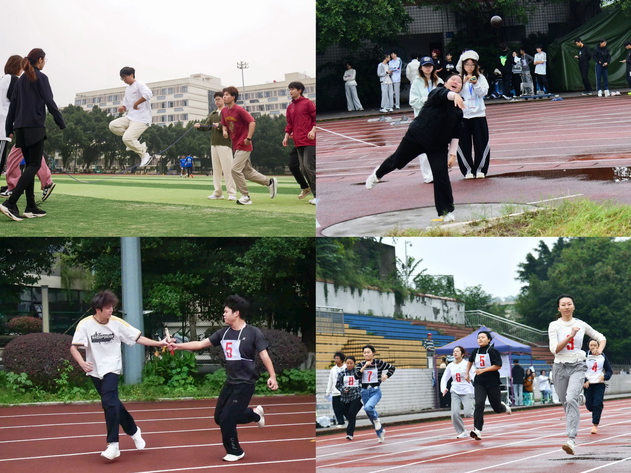 赛场上,奔跑的脚步声、震耳的呐喊声与胜利的欢呼声此起彼伏,交织成一曲激昂的青春乐章。运动员们如离弦之箭冲出起点,奋力冲刺终点,在每一次呼吸与步伐中诠释坚持与拼搏;接力赛中,精准的交棒与默契的配合彰显团队协作的力量;跳跃项目里,腾空而起的矫健身影划出优美弧线,定格赛场高光瞬间。汗水与激情交融,奋斗与梦想共振,充分展现了青年学子昂扬向上的精神风貌。
