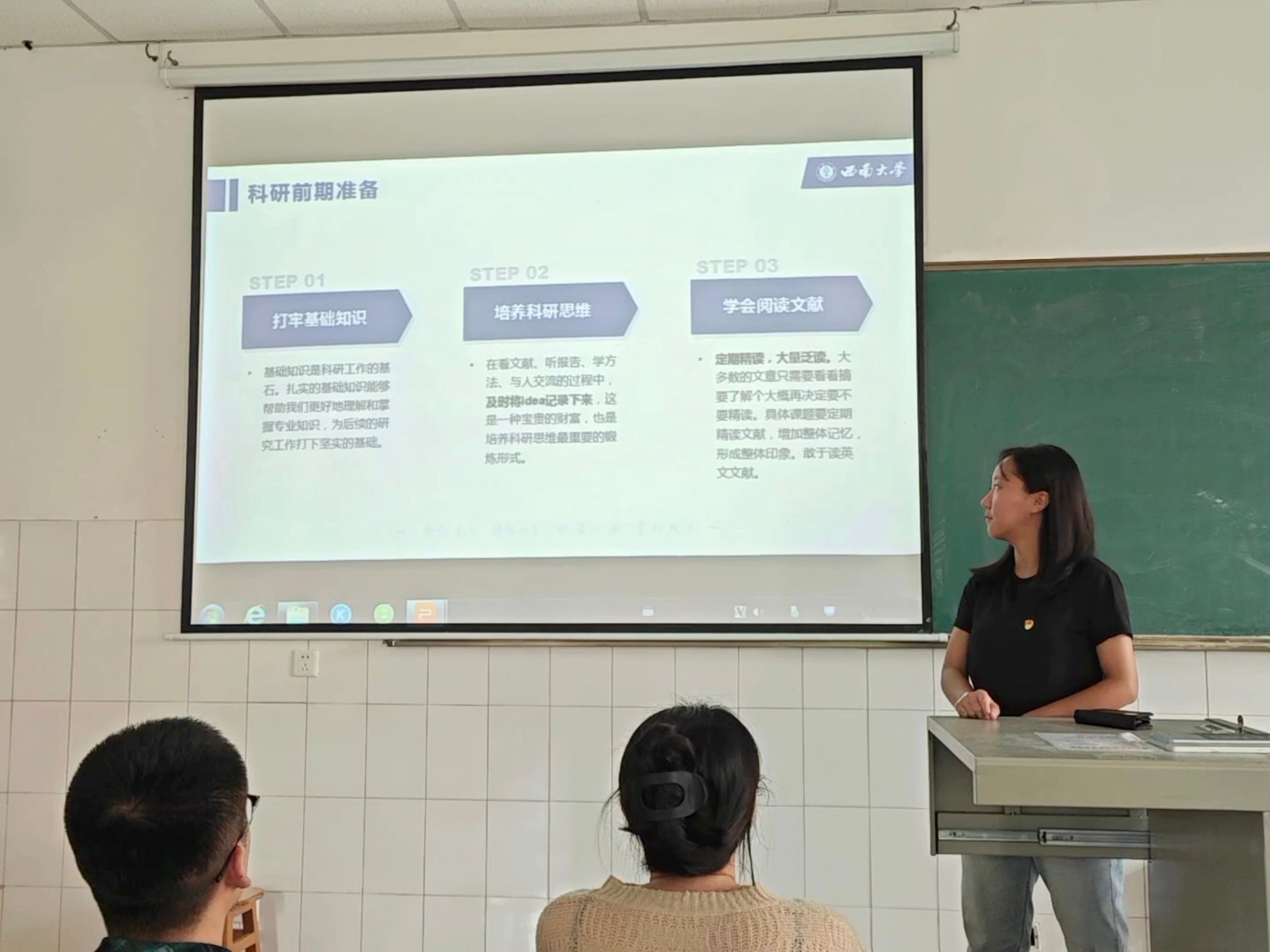 学习科研岗同志化身“引路人”,倾囊相授实用经验。戴紫怡同志在研究生骨干培训中,以“理论+实操”拆解公文格式,结合案例梳理易错点,从标题到标点细致讲解,高效解决“格式难”问题,助力骨干掌握核心要领。陈清扬同志则分享图情专业学习方法:以“抓主线、重实践”为核心,搭建知识框架,课堂聚焦重点,课后用CNKI等数据库拓展阅读,借实践作业转化能力。多参与学术交流,保持跨学科学习心态。
