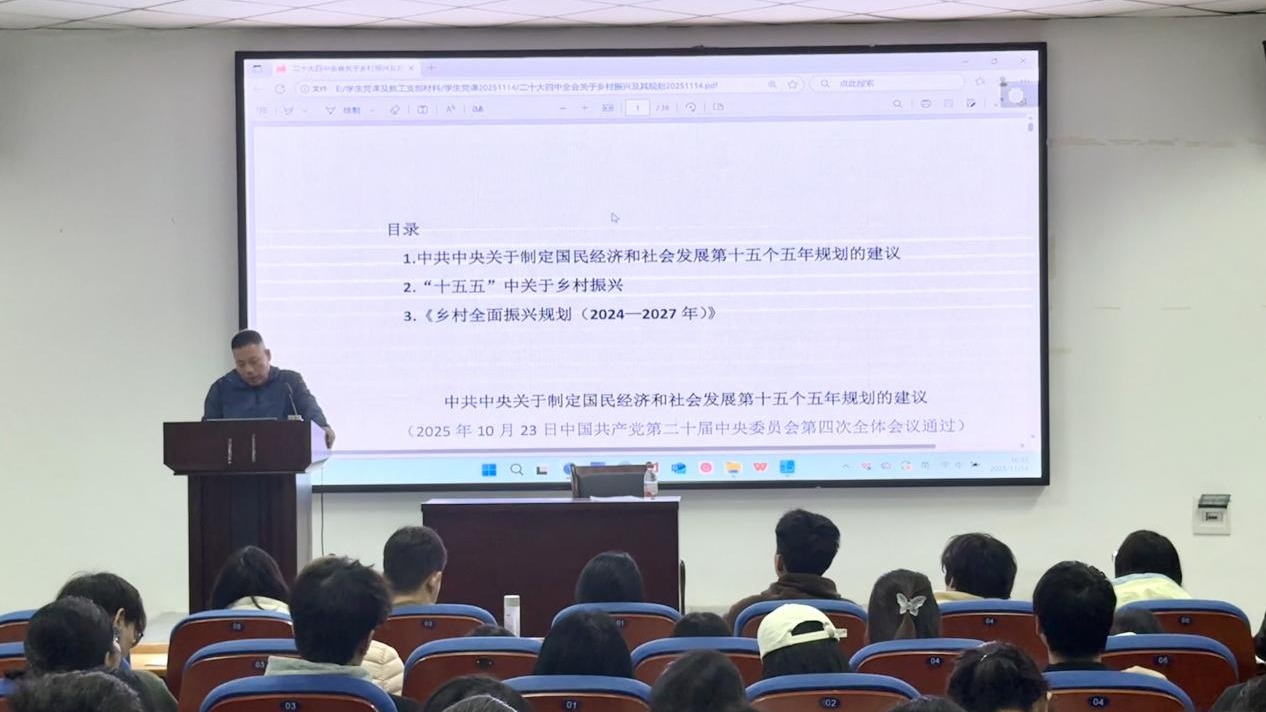 学院组织员刘光英以校史育新人,深情讲述澳门pg官方电子平台“含弘光大,继往开来”的精神传承,用侯光炯院士躬耕大地、袁隆平院士禾下乘凉的感人事迹,激励学员树立科技报国志向,践行初心使命。