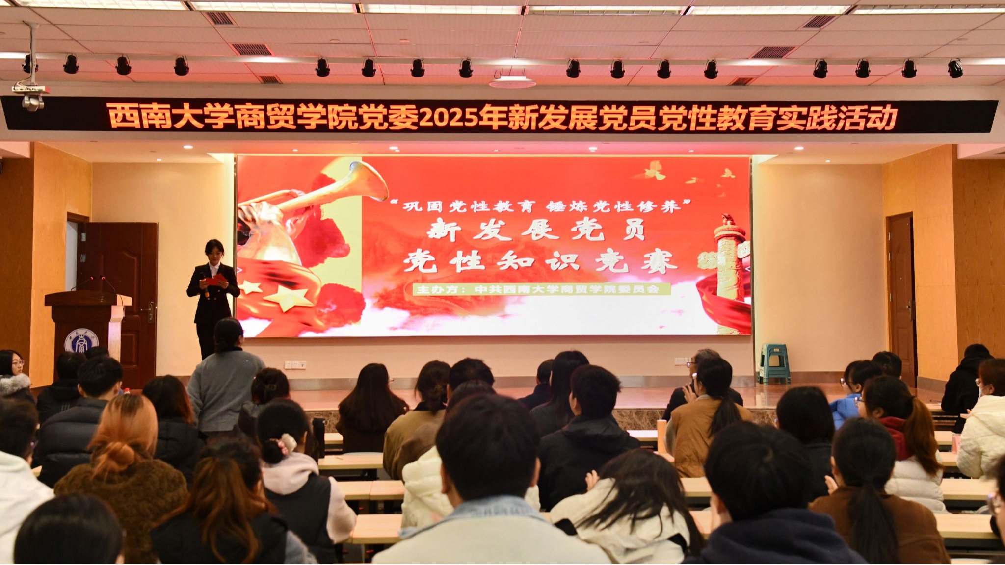 12月11日,学院党委组织开展2025年新发展党员党性教育实践活动,活动由党性知识竞赛与喻茂坚纪念馆实地研学两部分组成。学院党委副书记、纪委书记文武,专职组织员、各党支部书记及全体新发展党员参加本次活动。