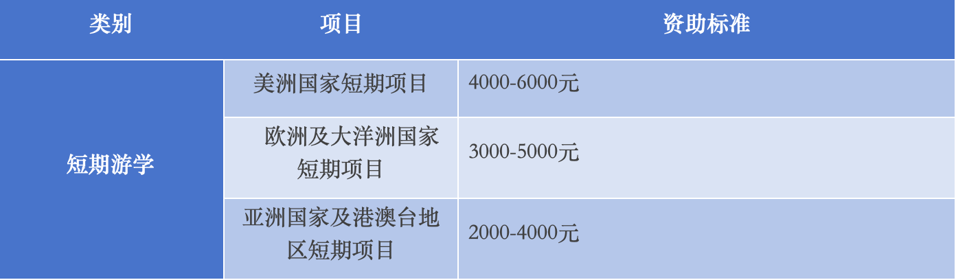 参加“一带一路”沿线国家以及南美地区等友好高校开展的各类短期学习交流项目,在以上资助基础上,可按项目费 10%-30%的标准对学生给予额外资助,但资助总额最高一般不超过 10000 元/人。